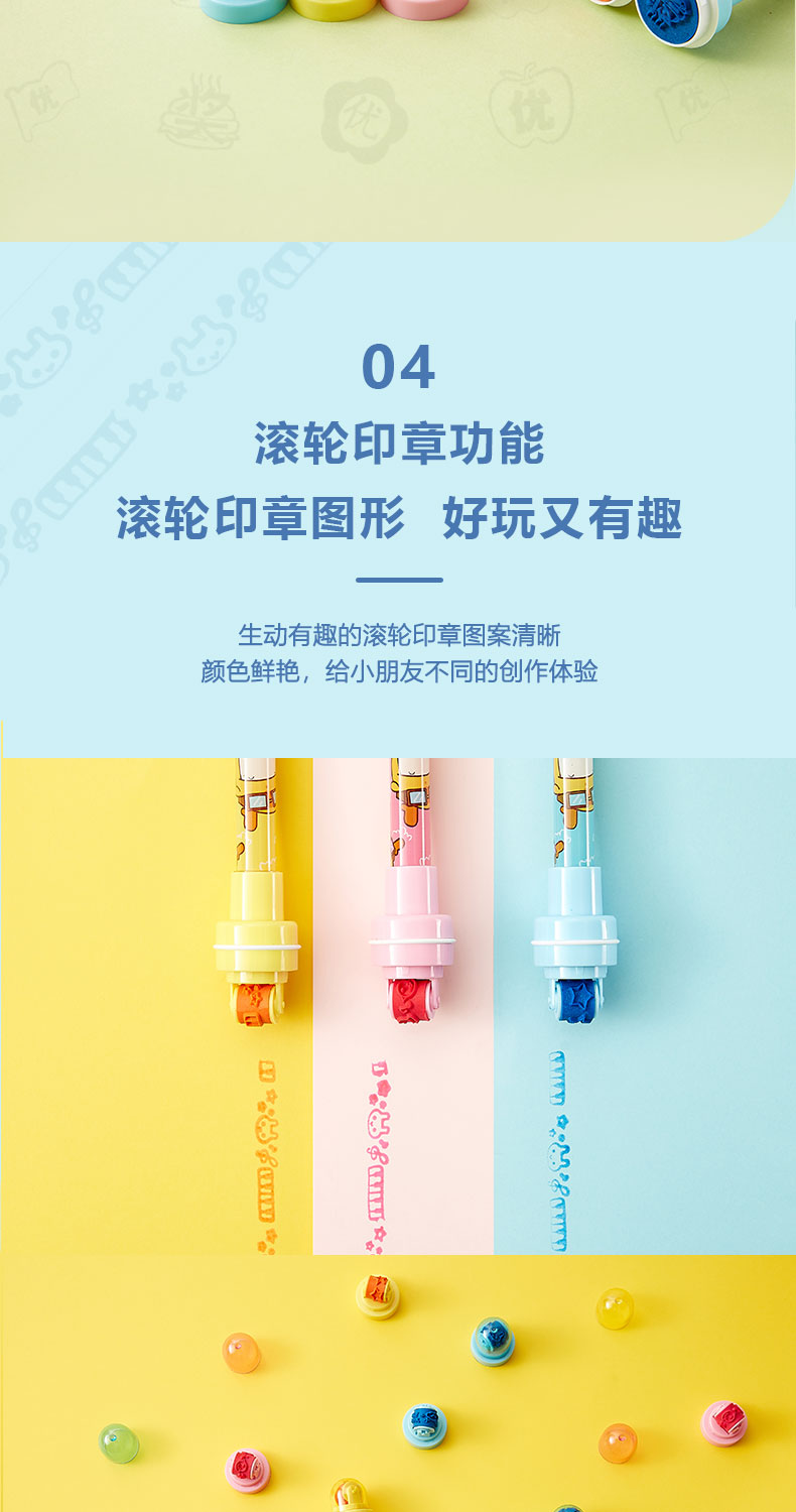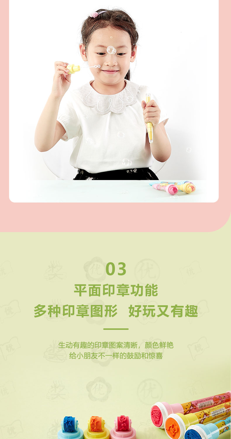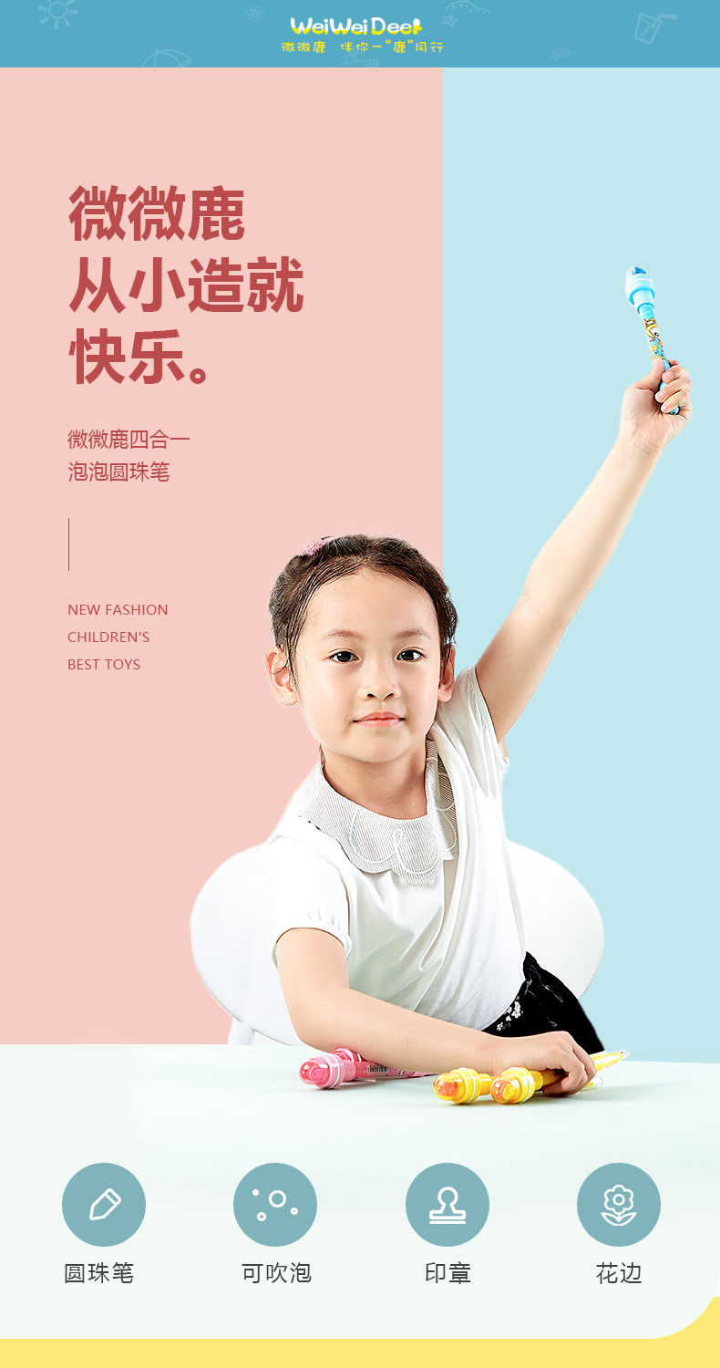微微鹿原创设计创意4合1多功能学生儿童圆珠笔泡泡笔吹泡泡滚轮奖励印章