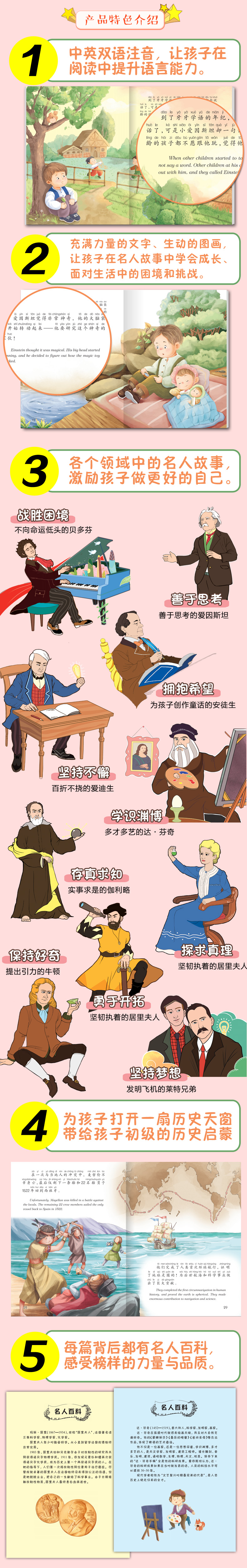 20册中外名人故事 中国名人绘本故事+外国名人绘本故事中英双语注音版带拼音故事书大班 启蒙亲子 故事 幼儿 儿童故事 宝宝绘本
