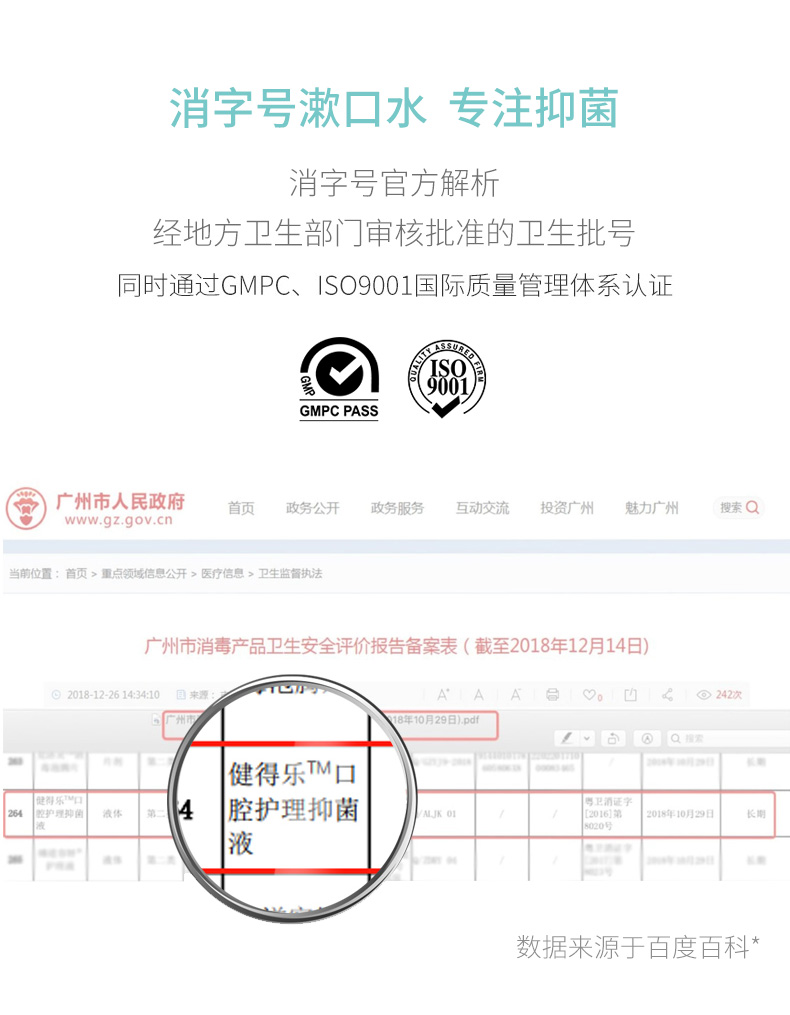 健得乐口腔护理抑菌液漱口水清新口气防蛀牙非美白口腔溃疡便携