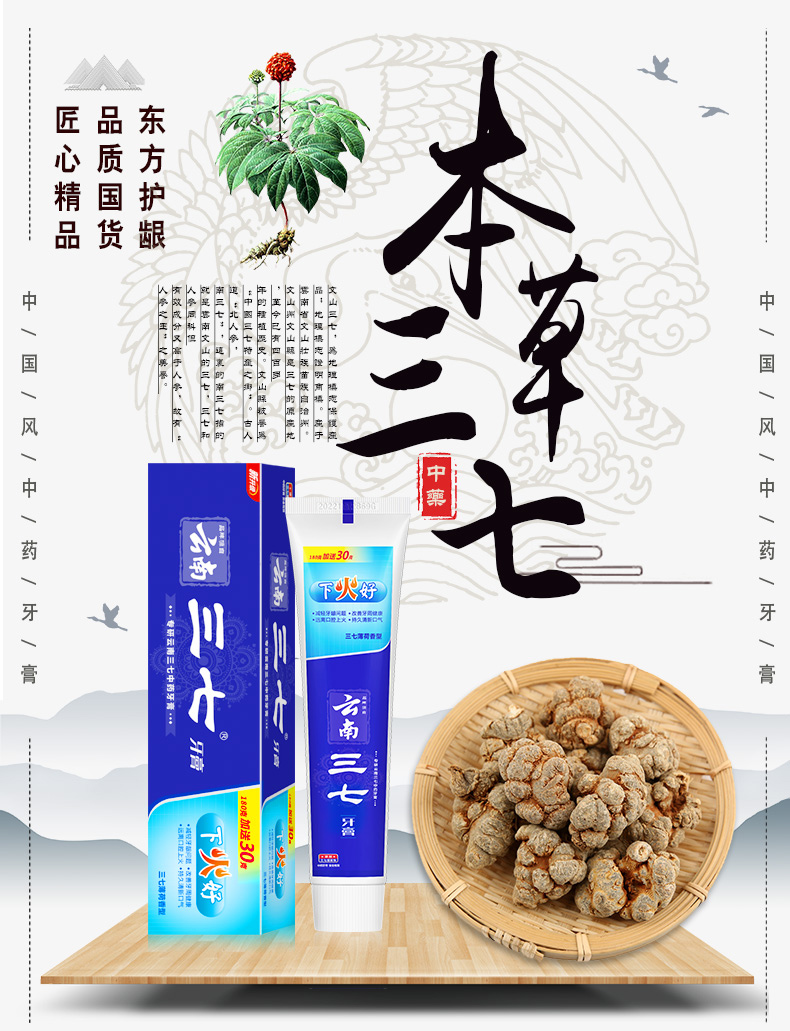 云南三七专效祛火美白中药牙龈出血美白去口气去黄渍牙膏