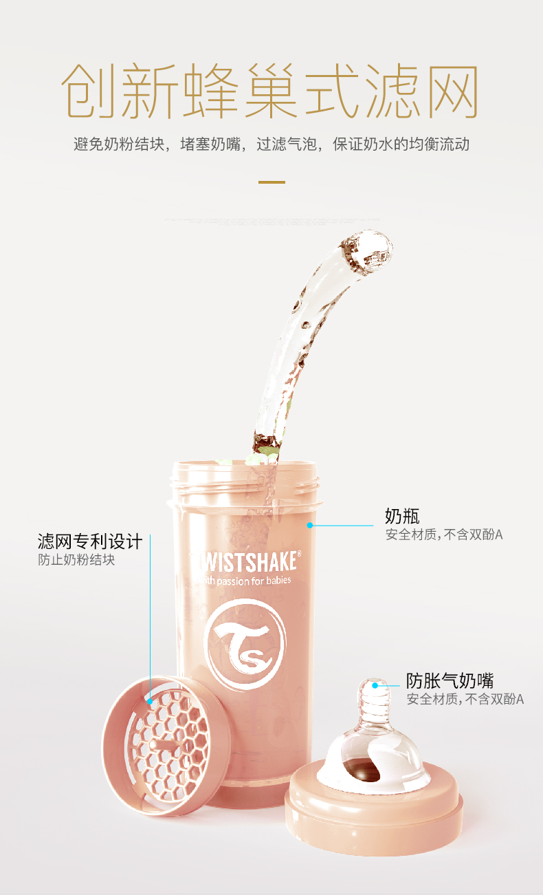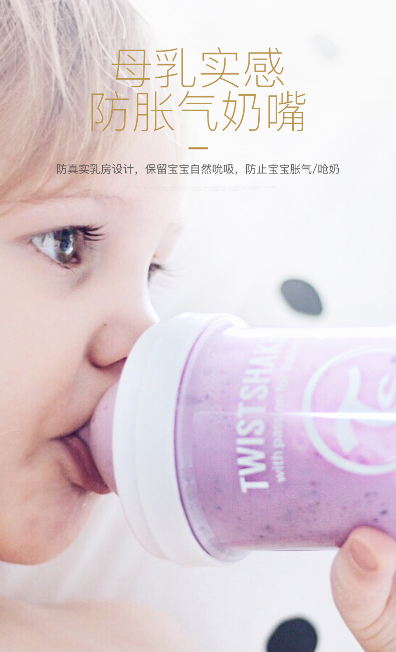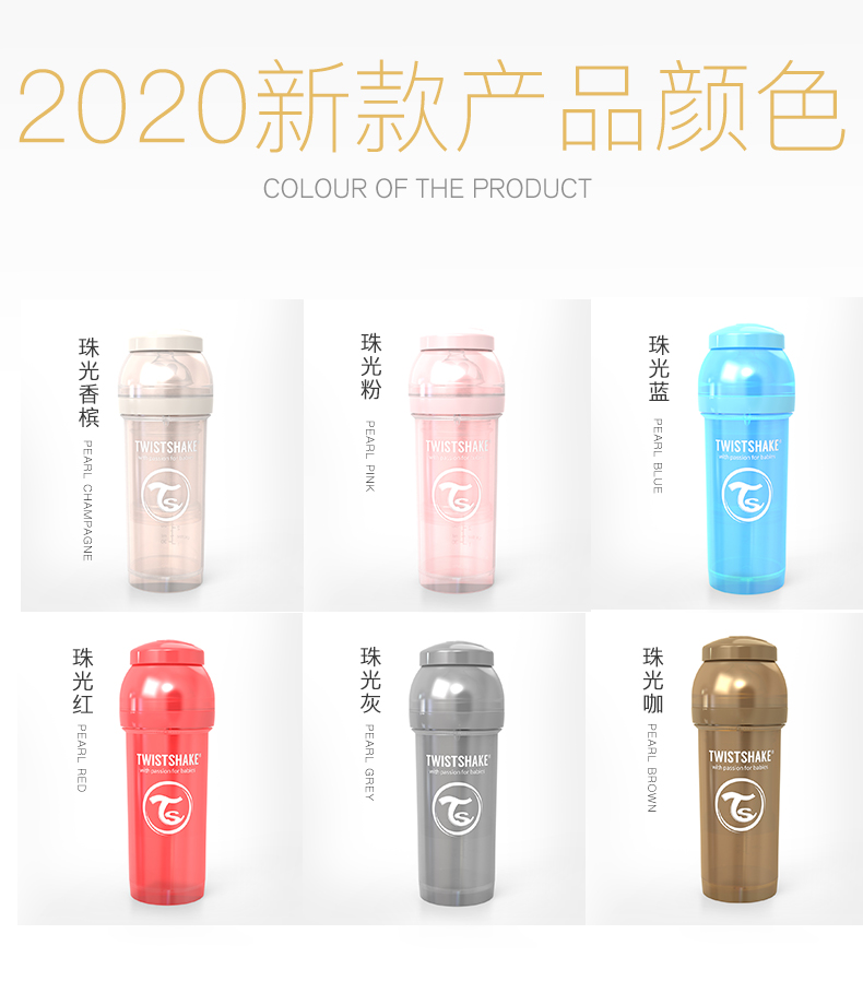 新款瑞典twistshake新生婴儿奶瓶,宽口径,防胀气,易清洗,高颜值,2020新款珠光色系列首发,欧洲进口高级食品级原料国际安全标准,母乳实感防胀气奶嘴,创新蜂巢式漉网避免奶粉结块堵塞奶嘴