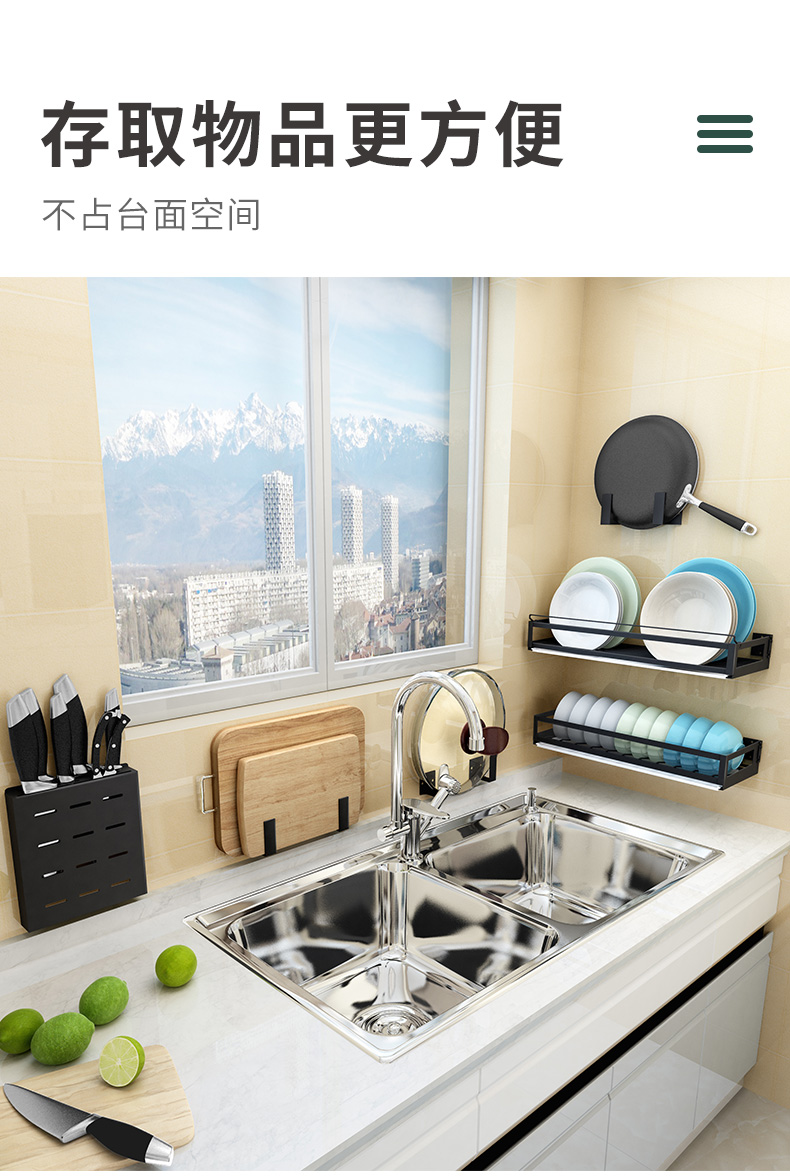免打孔,不锈钢烤漆坚实,颜值高,不锈钢磨砂,承重力强,坚固耐用,透气通风,简约设计,自有搭配组合,安装简单,居家收纳必备,限时优惠