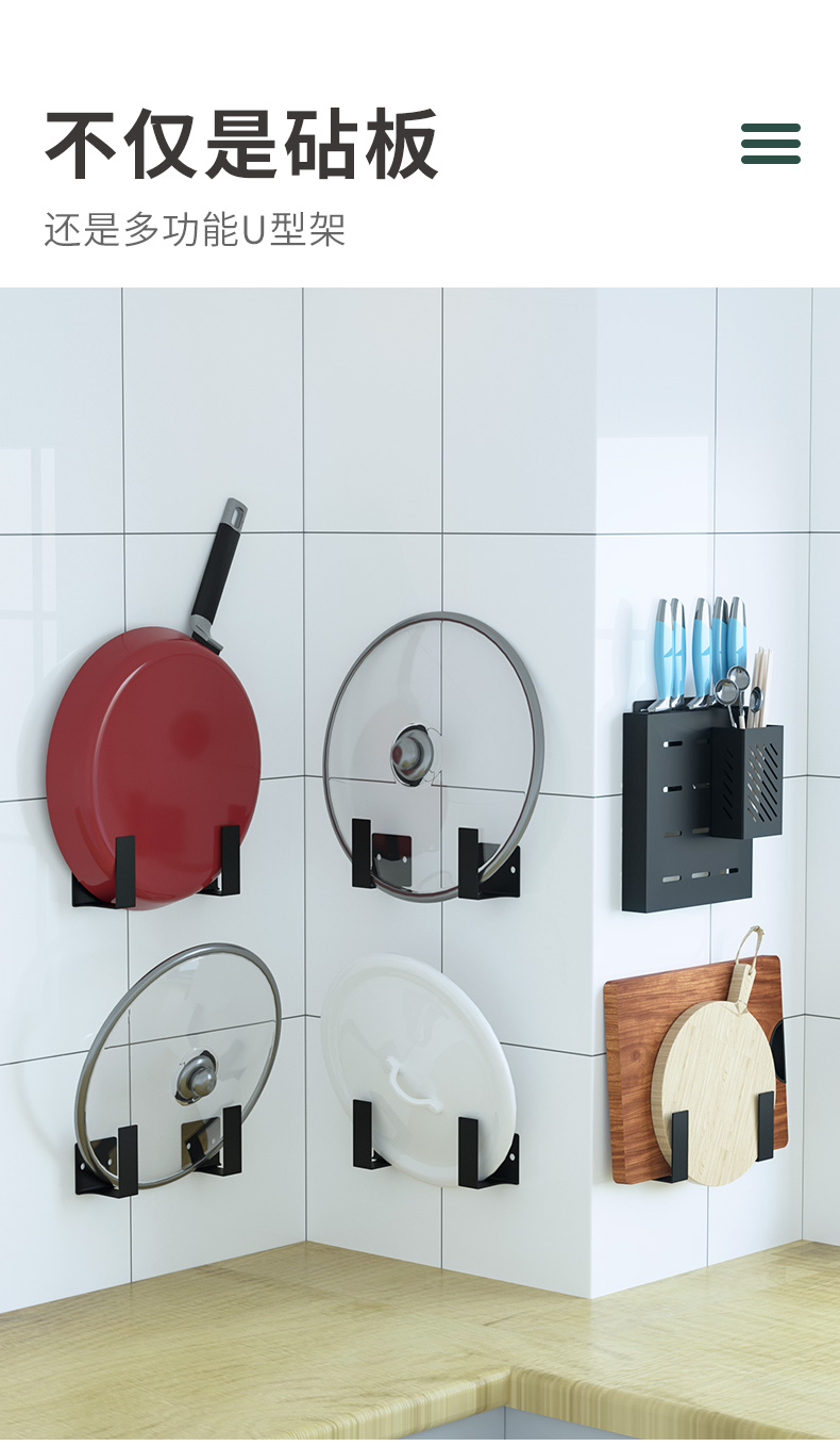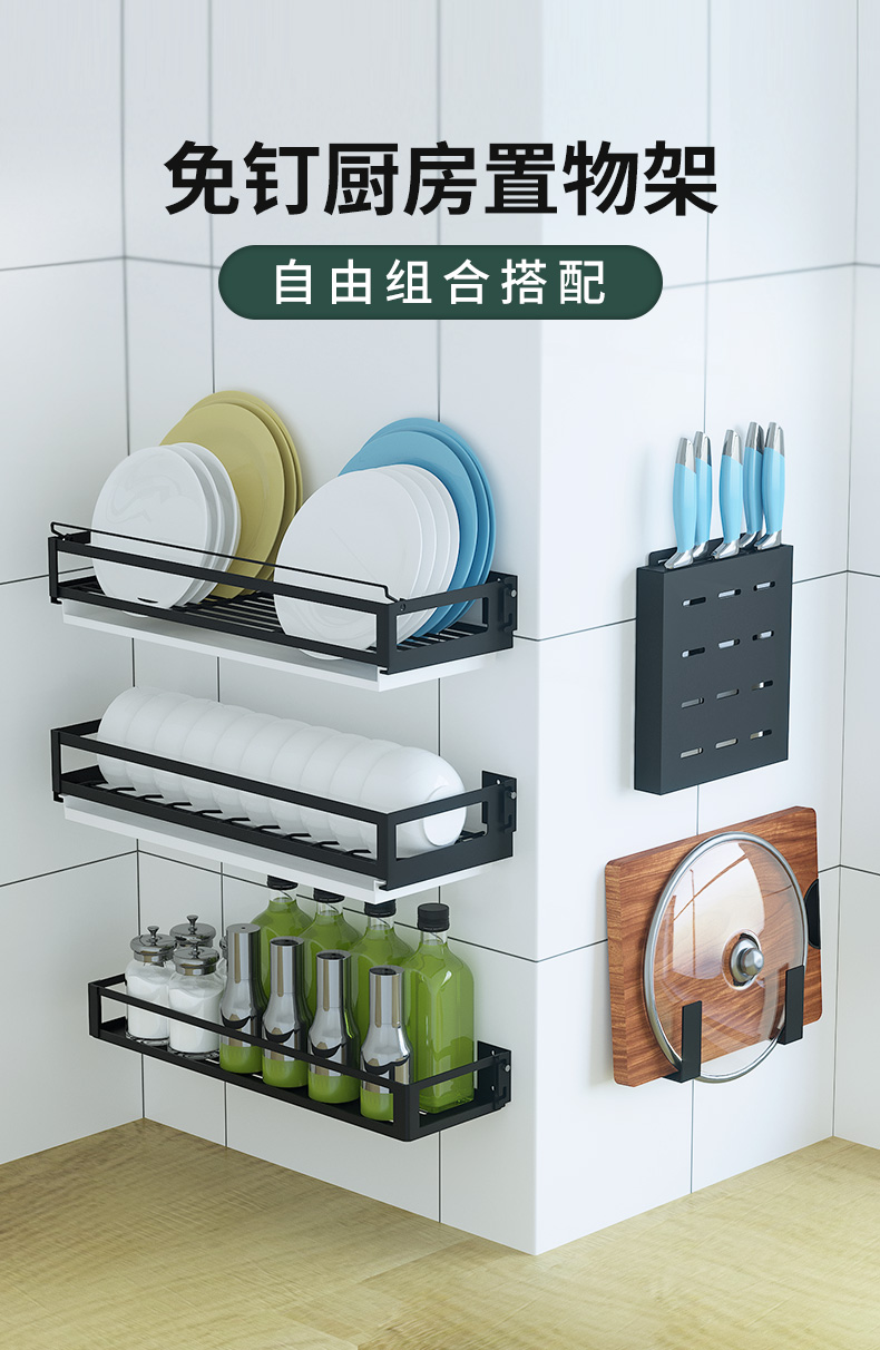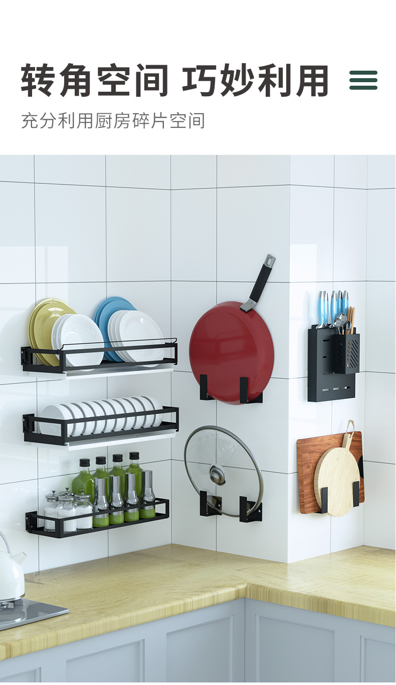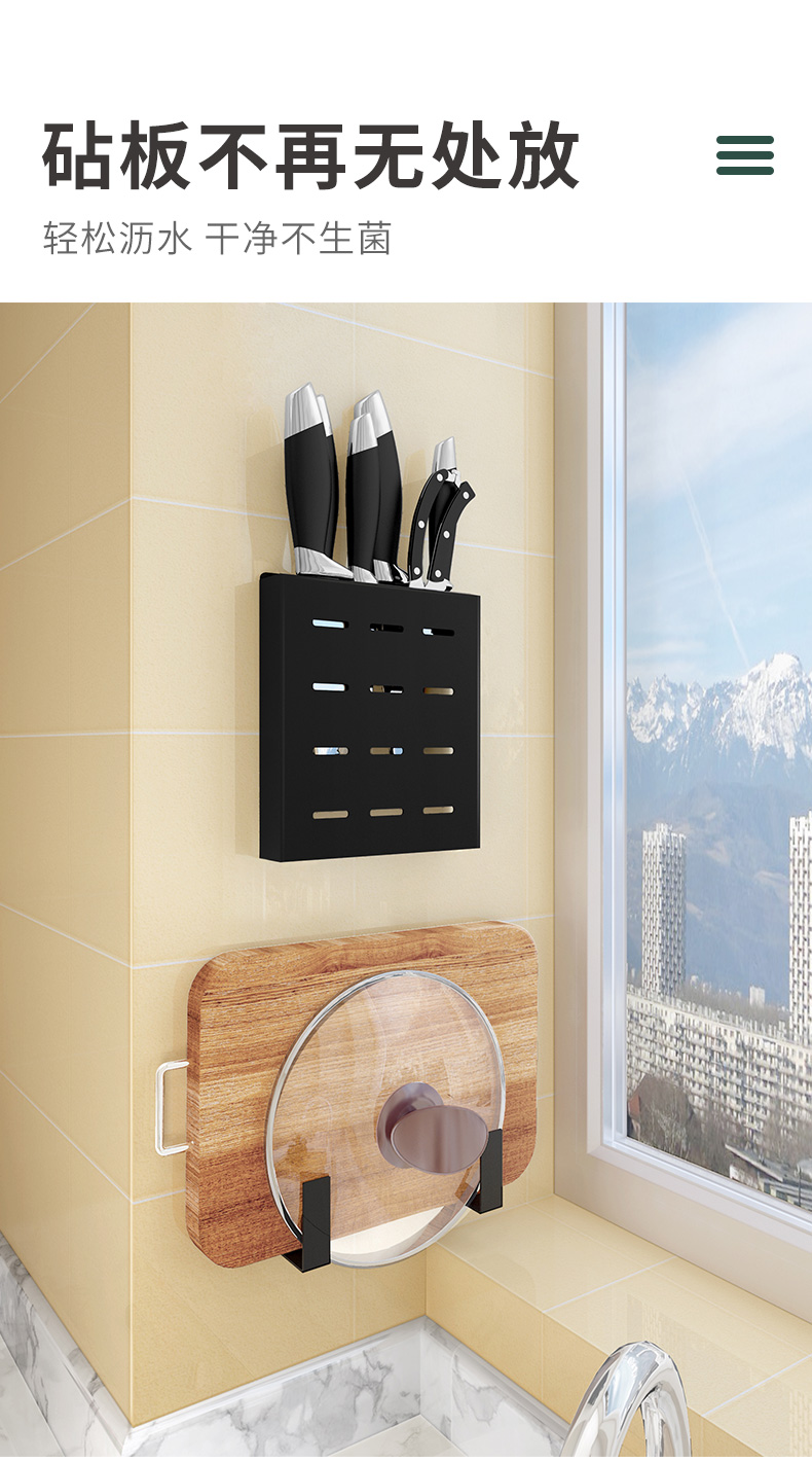 免打孔刀架厨房用品置物架壁挂式锅盖架家用大全收纳菜板架砧板架