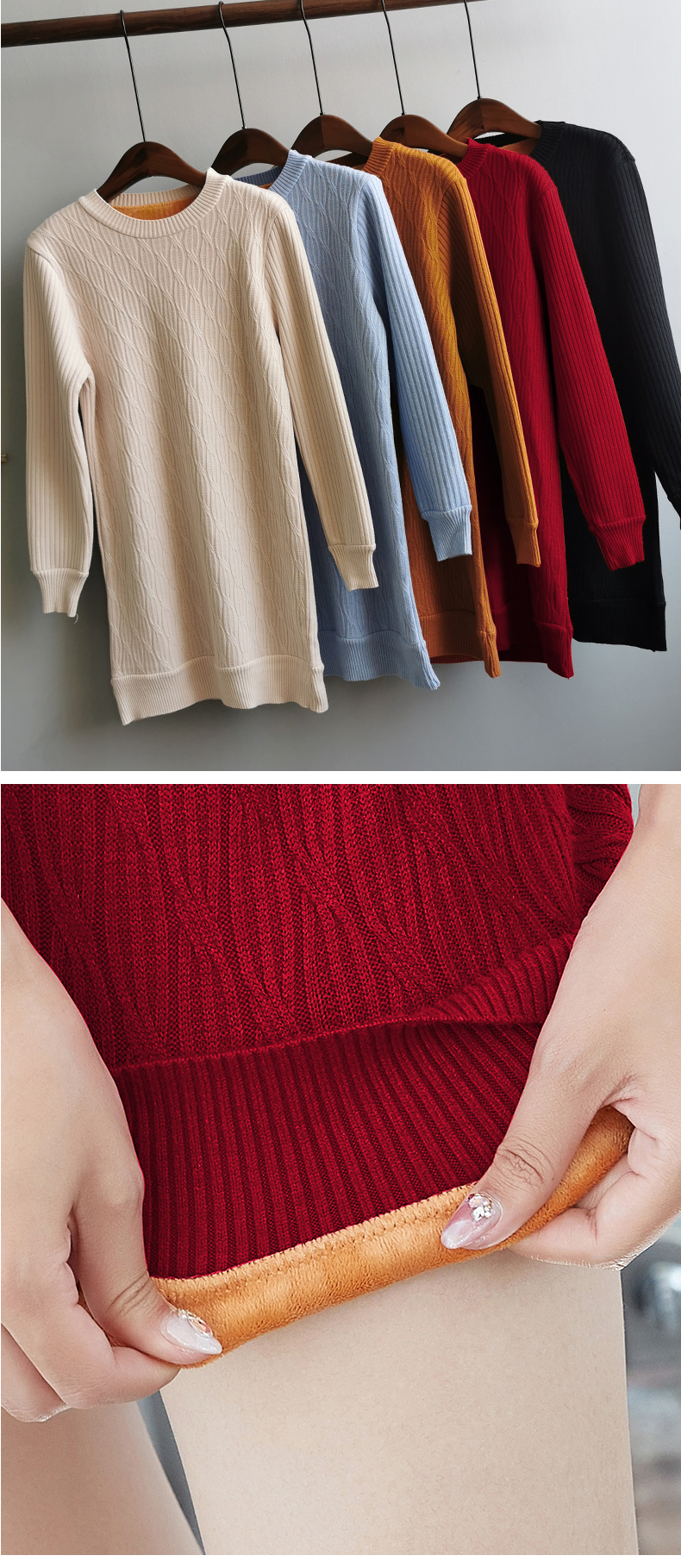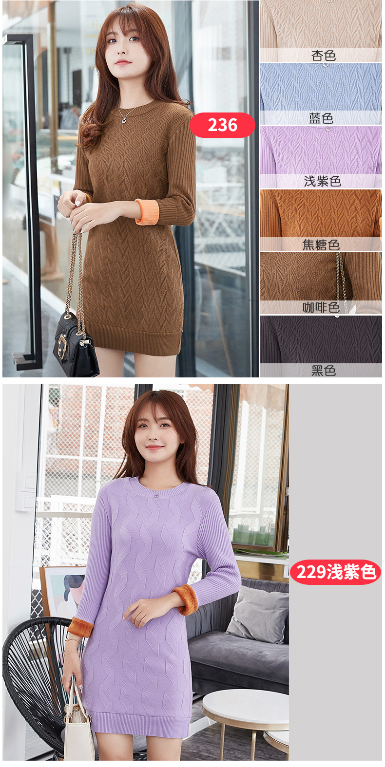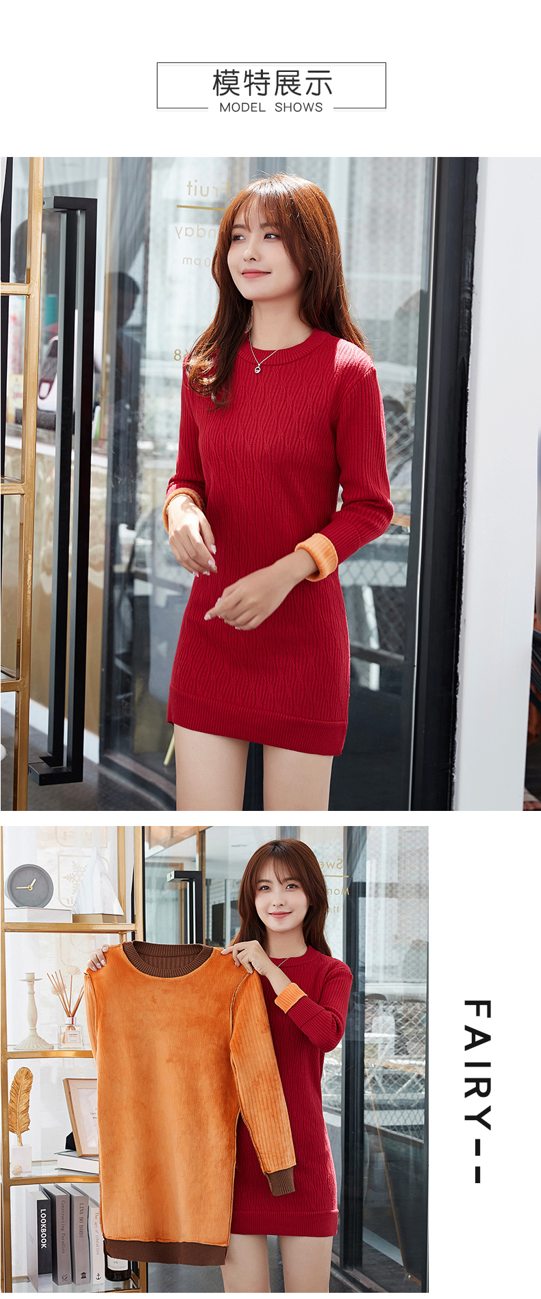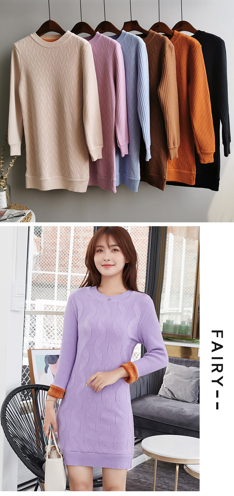 加绒毛衣女加厚中长款宽松外穿打底连衣裙韩版圆领套头针织打底衫