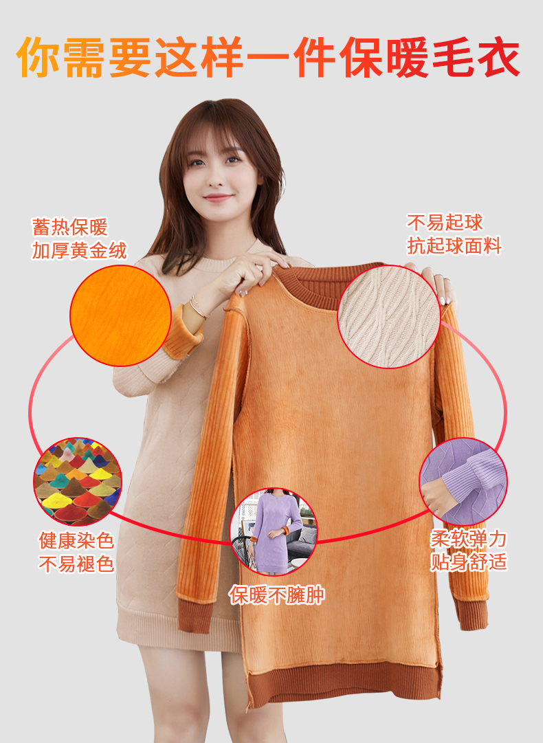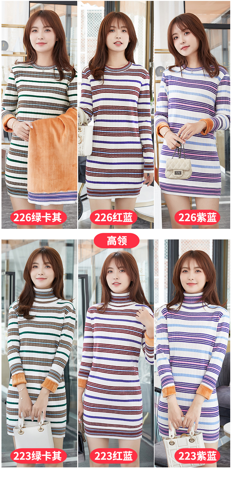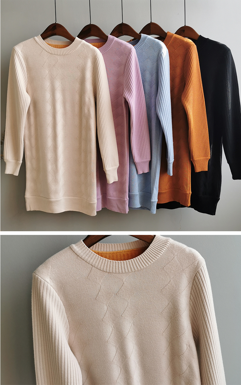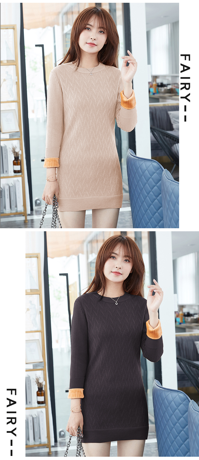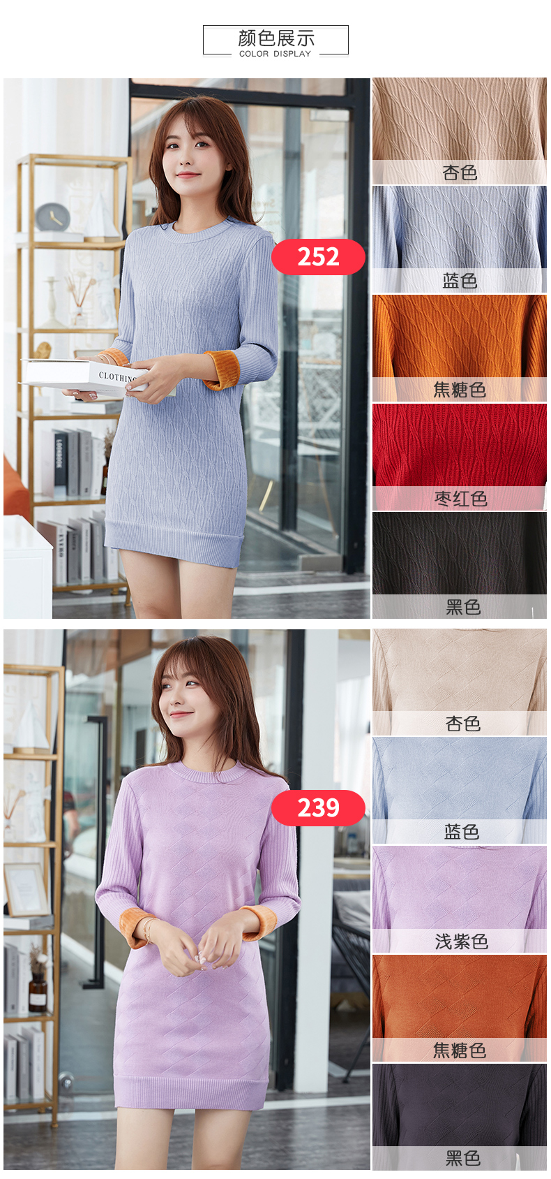 加绒毛衣女加厚中长款宽松外穿打底连衣裙韩版圆领套头针织打底衫