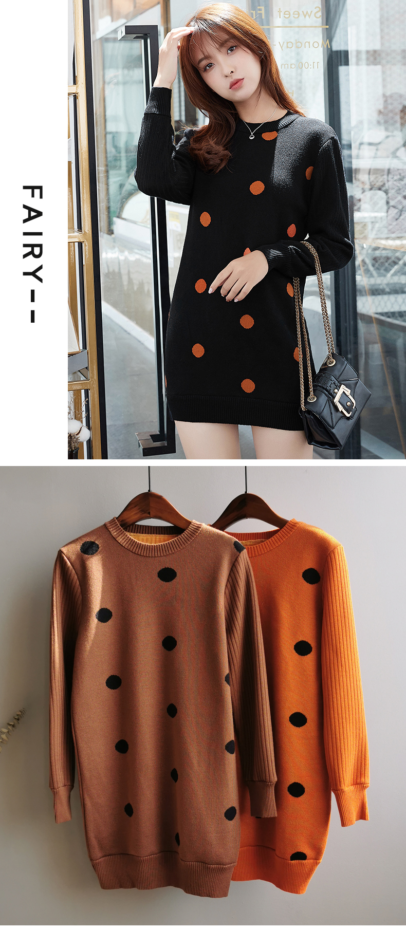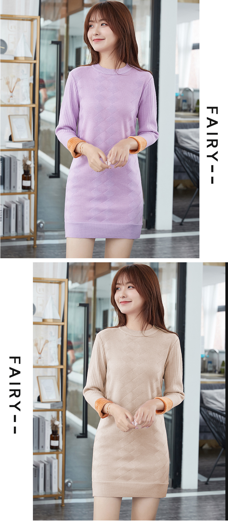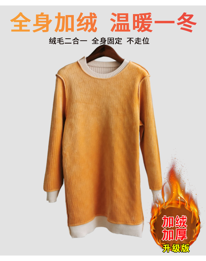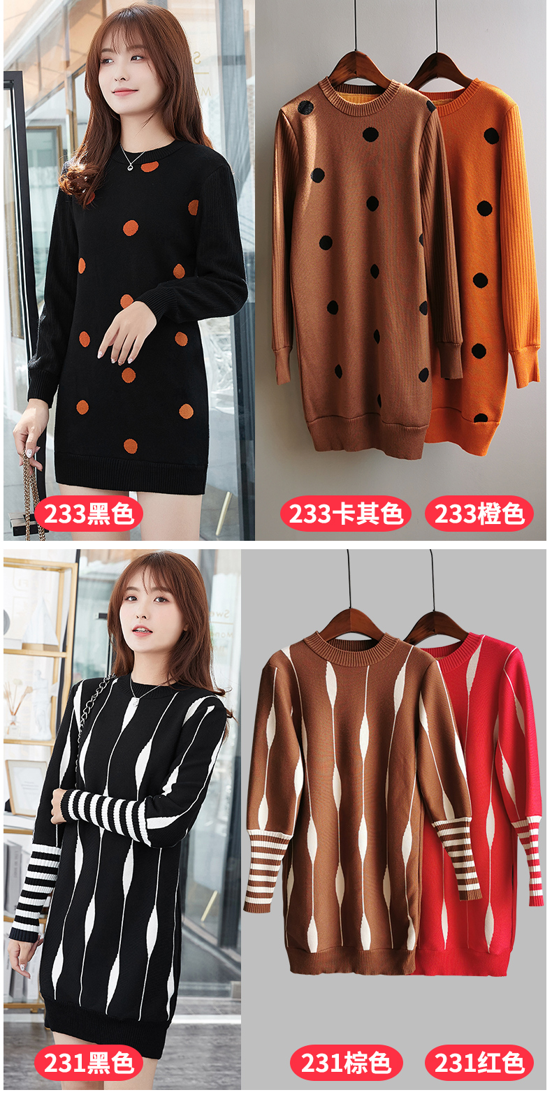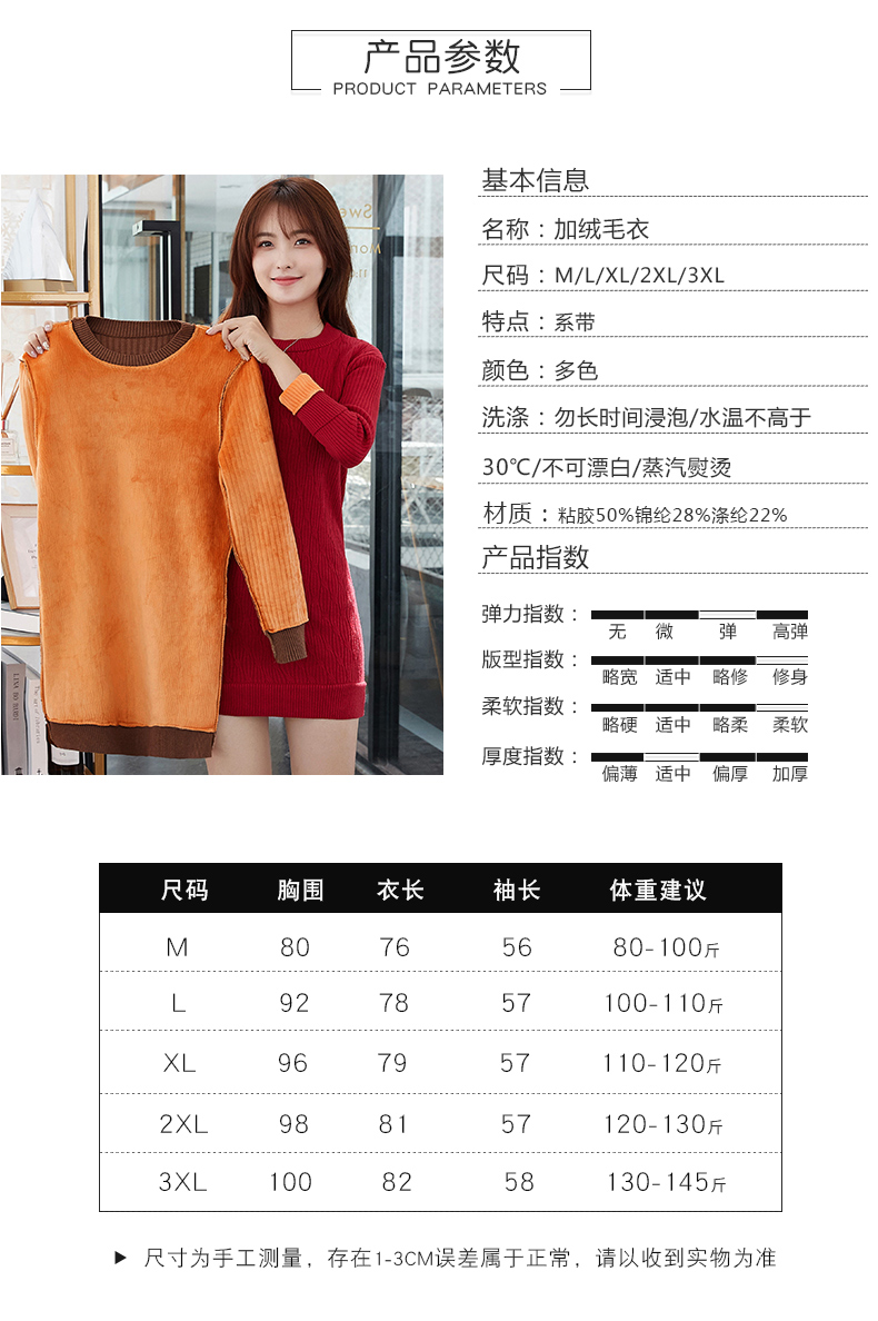 加绒毛衣女加厚中长款宽松外穿打底连衣裙韩版圆领套头针织打底衫
