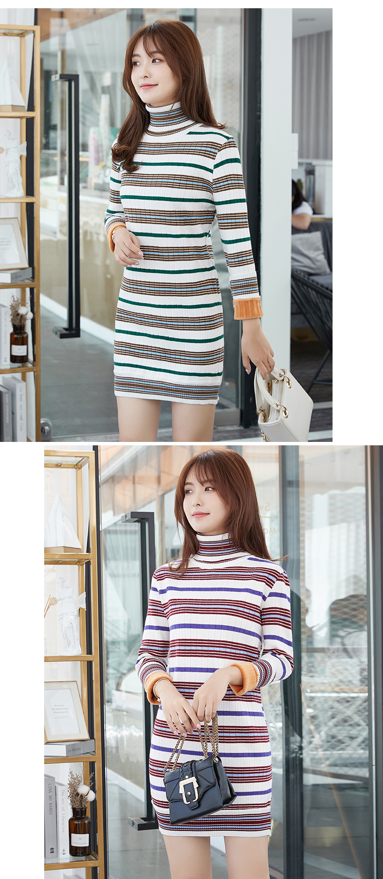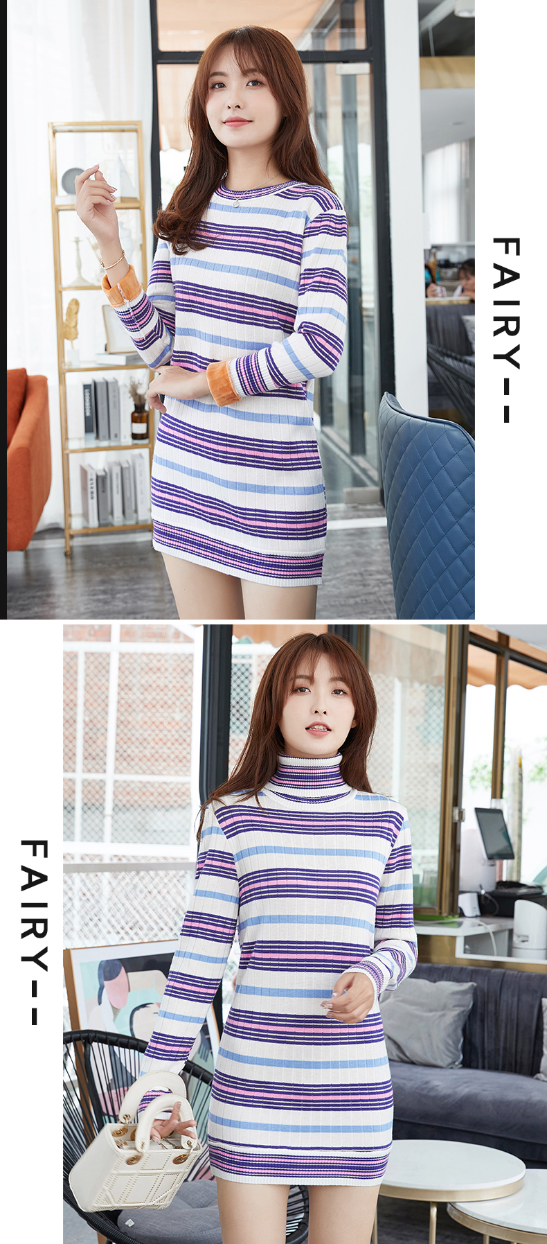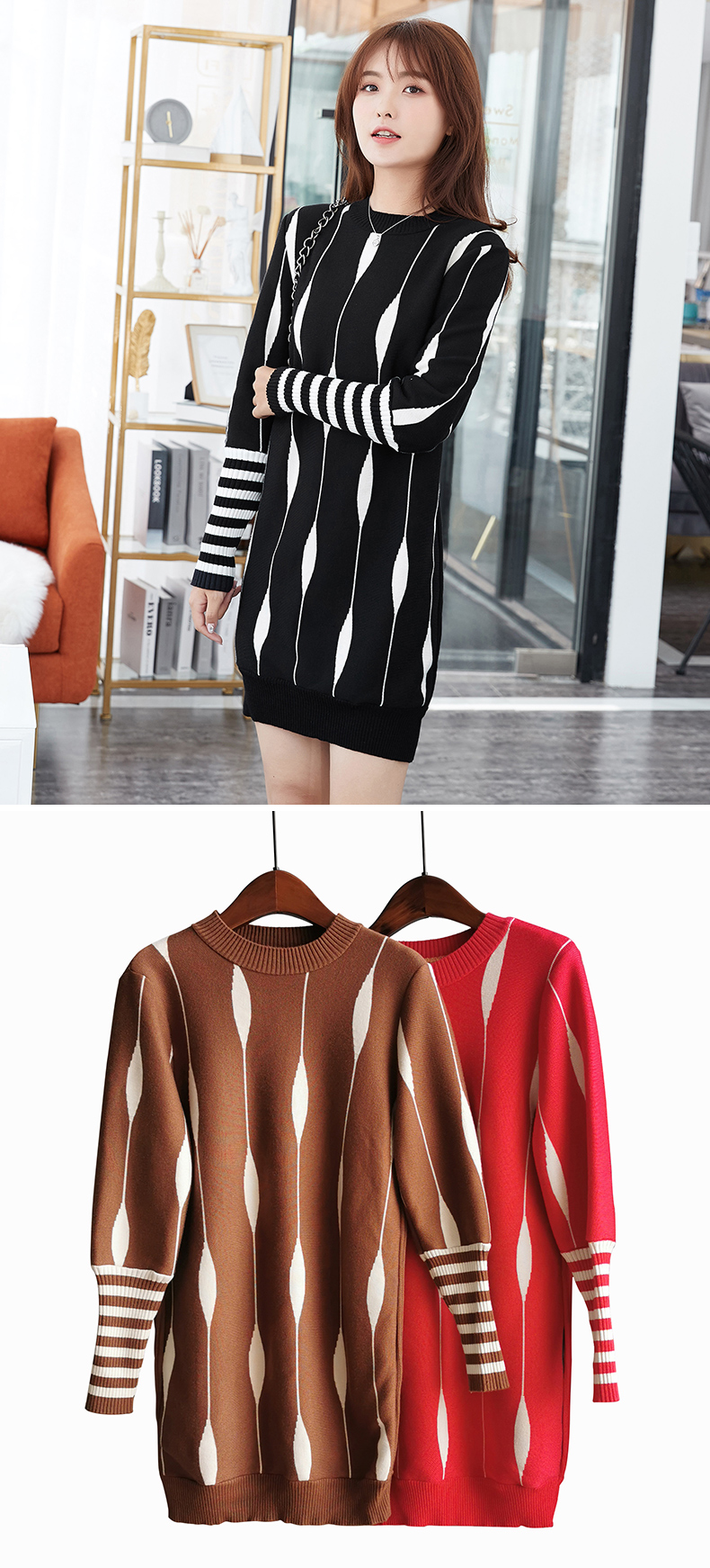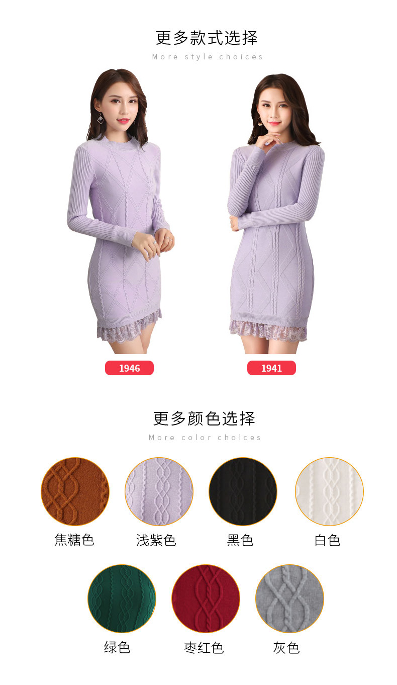 加绒毛衣女加厚中长款宽松外穿打底连衣裙韩版圆领套头针织打底衫