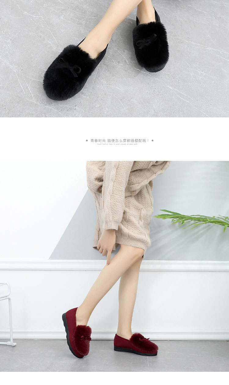 2019秋冬兔毛韩版加绒豆豆鞋女休闲鞋平底毛毛鞋百搭老北京布鞋女