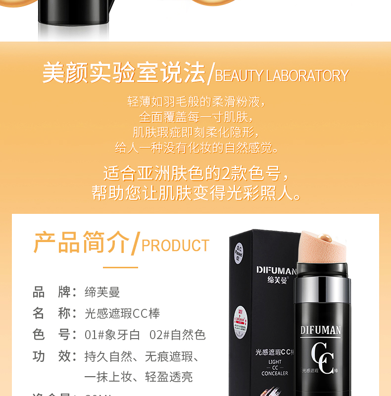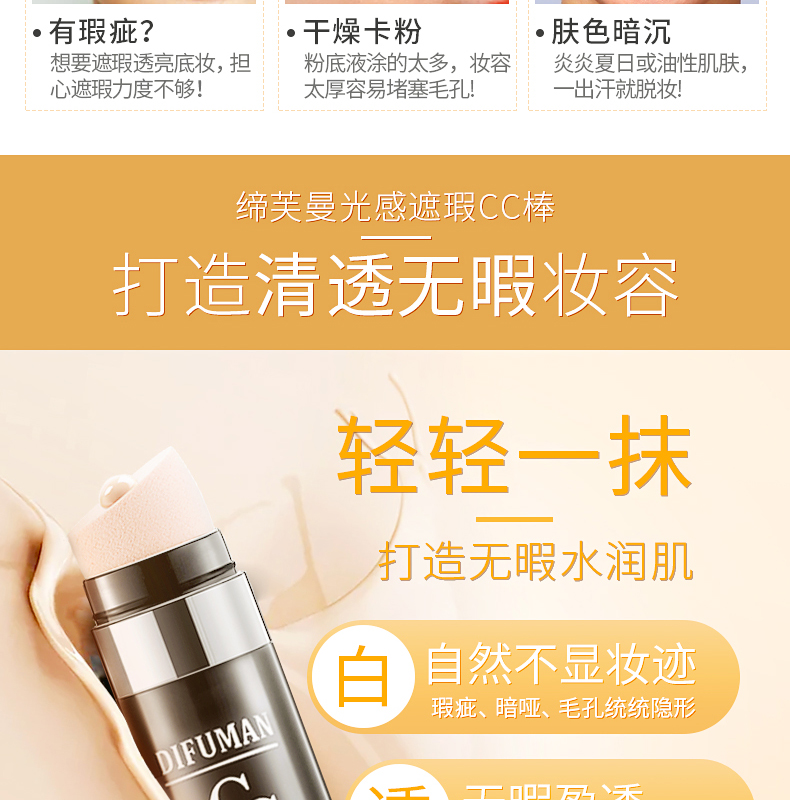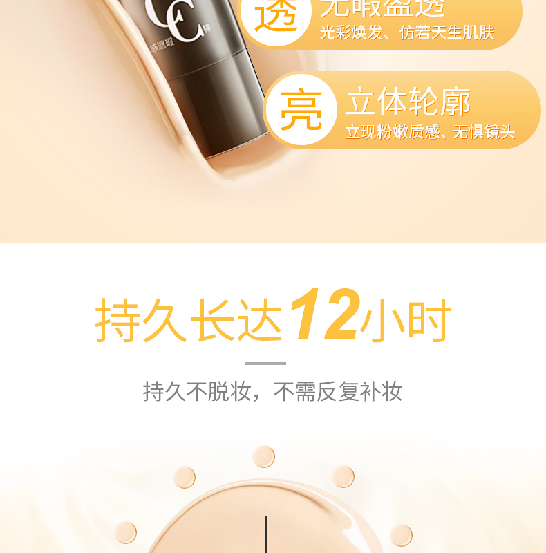 【2只装】光感遮瑕CC棒,打造无瑕水润肌,自然不显妆迹,无瑕盈透,持久不脱妆,不需反复补妆,持久长达12小时