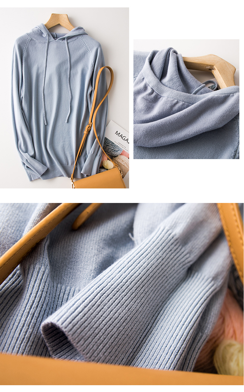 2019新款连帽韩版宽松毛衣 帽衫女春秋长袖套头外套羊绒针织衫