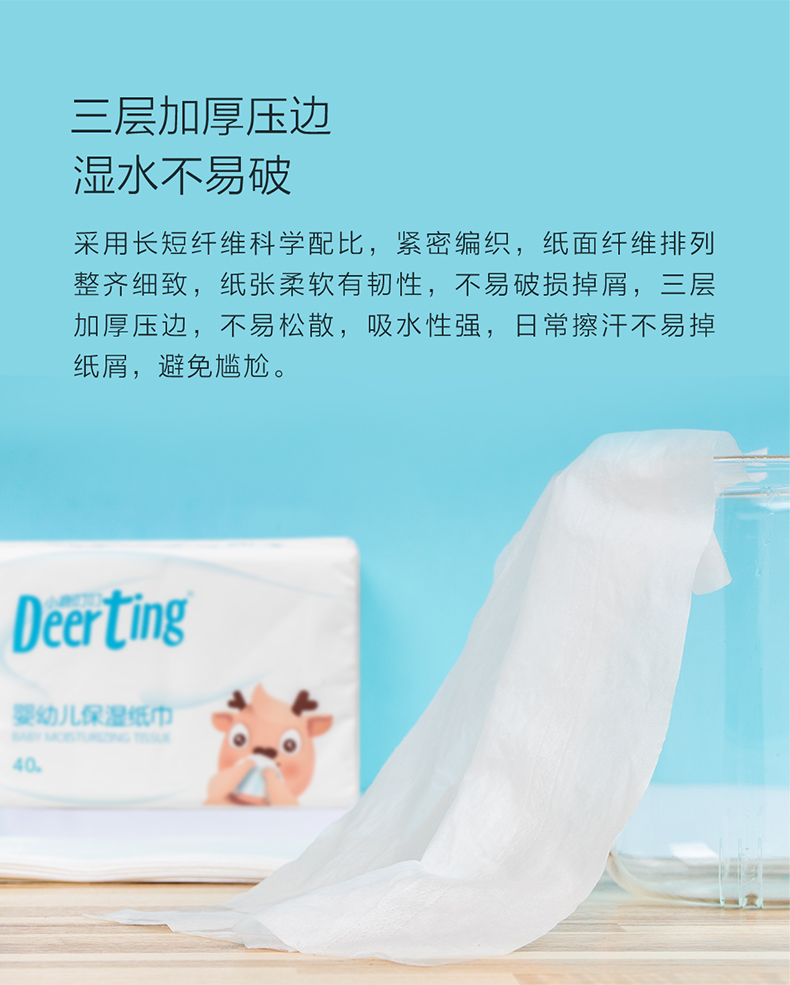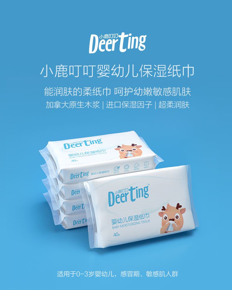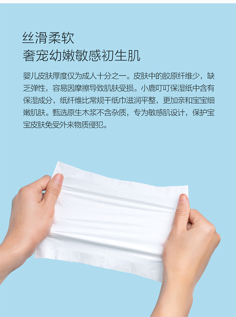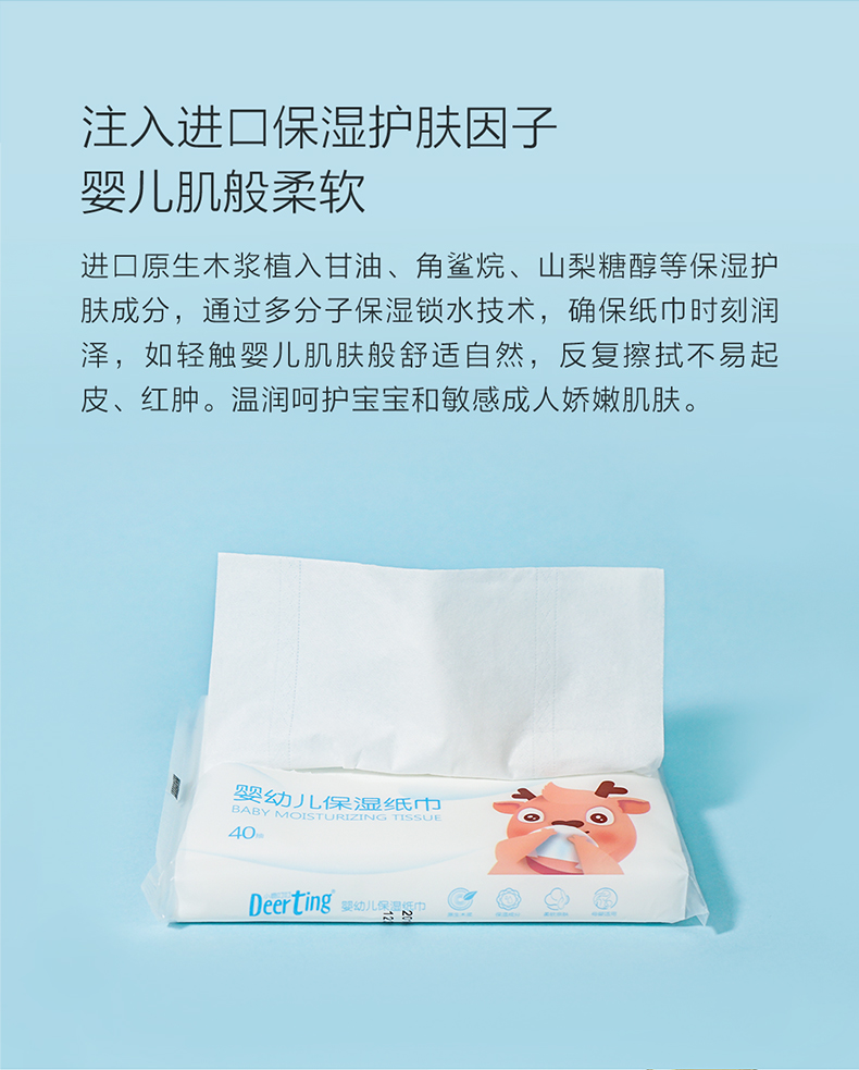 小鹿叮叮婴儿保湿云柔巾40抽*5包宝宝手口柔纸巾新生儿保湿纸抽纸 进口原生木浆,添加角鲨烷,天然甘油