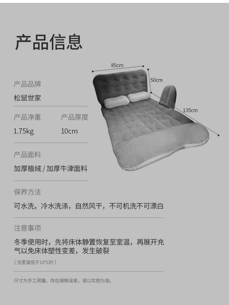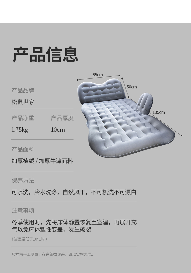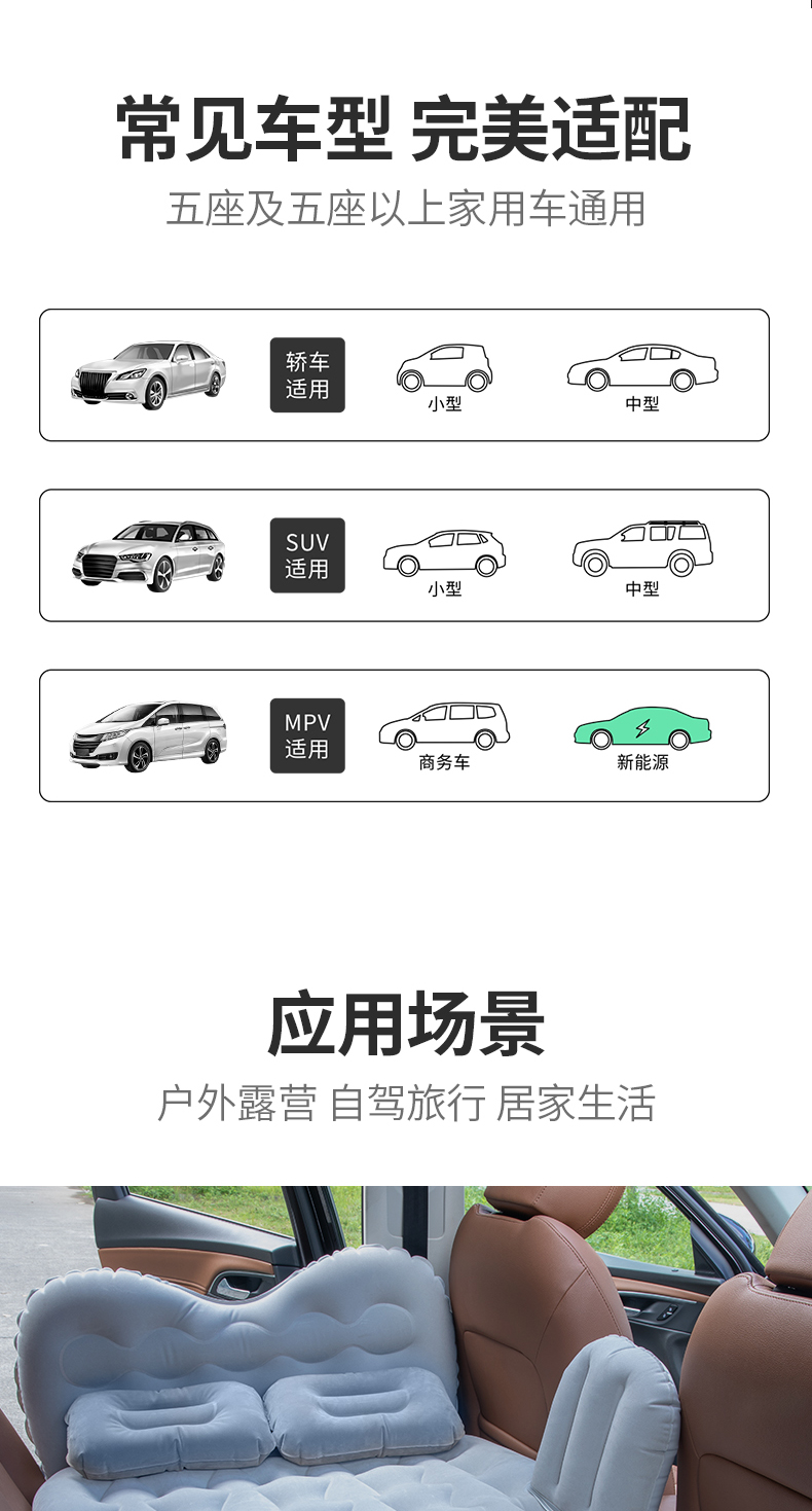 松鼠世家 车载充气床车中用床垫轿车SUV后排后座睡垫气垫床旅行床