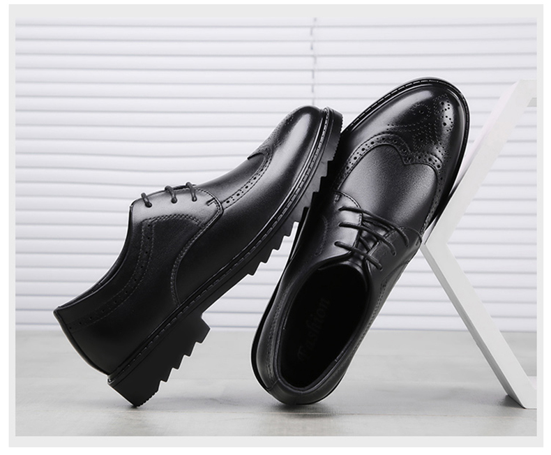 布洛克内增高皮鞋男士商务正装休闲韩版真皮黑色鞋子男鞋冬季加绒