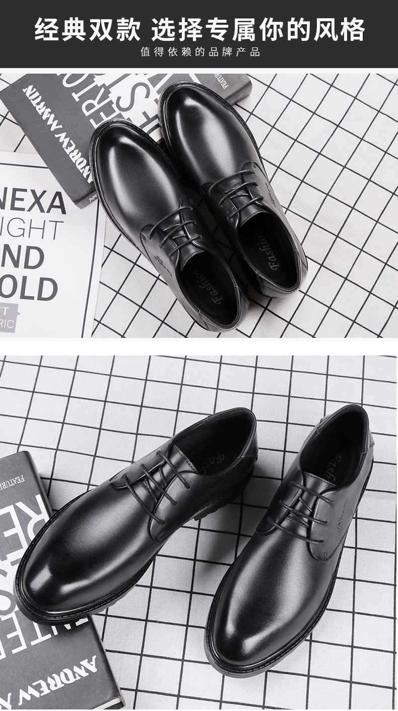 内增高设计,秒变180小伙,采用鞋带设计,鞋面是柔韧牛皮材质。橡胶底部防滑耐磨且柔韧度高,做工精致。商务、休闲一步到位,轻松应付各种场合!