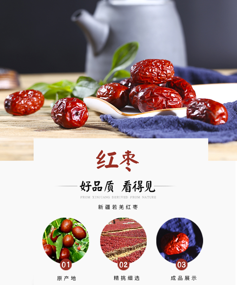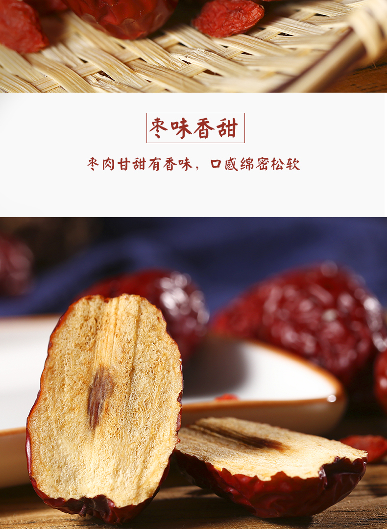 今日推荐:新疆若羌红枣,又香又甜,一级大枣,精挑细选,好品质看的见!枣肉甘甜肉香,枣皮薄核小肉多。炖鸡煮粥生吃均可
