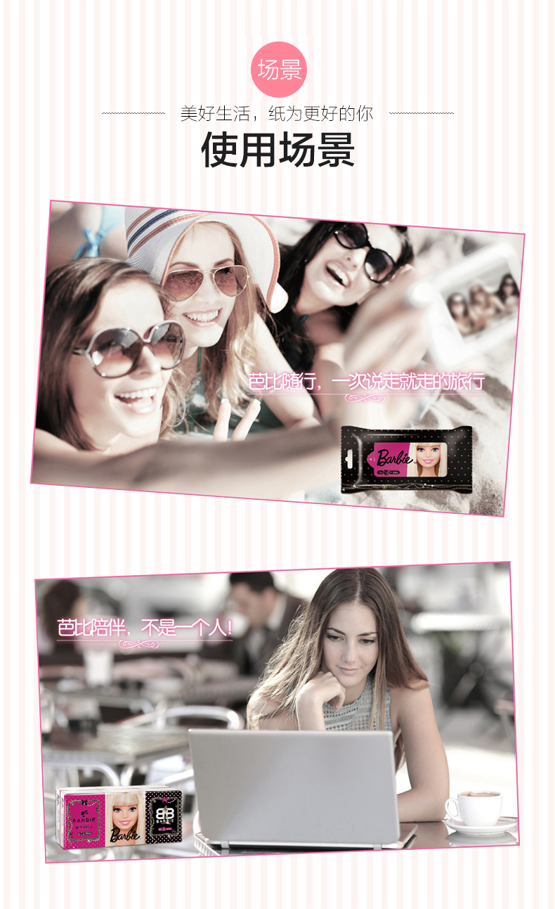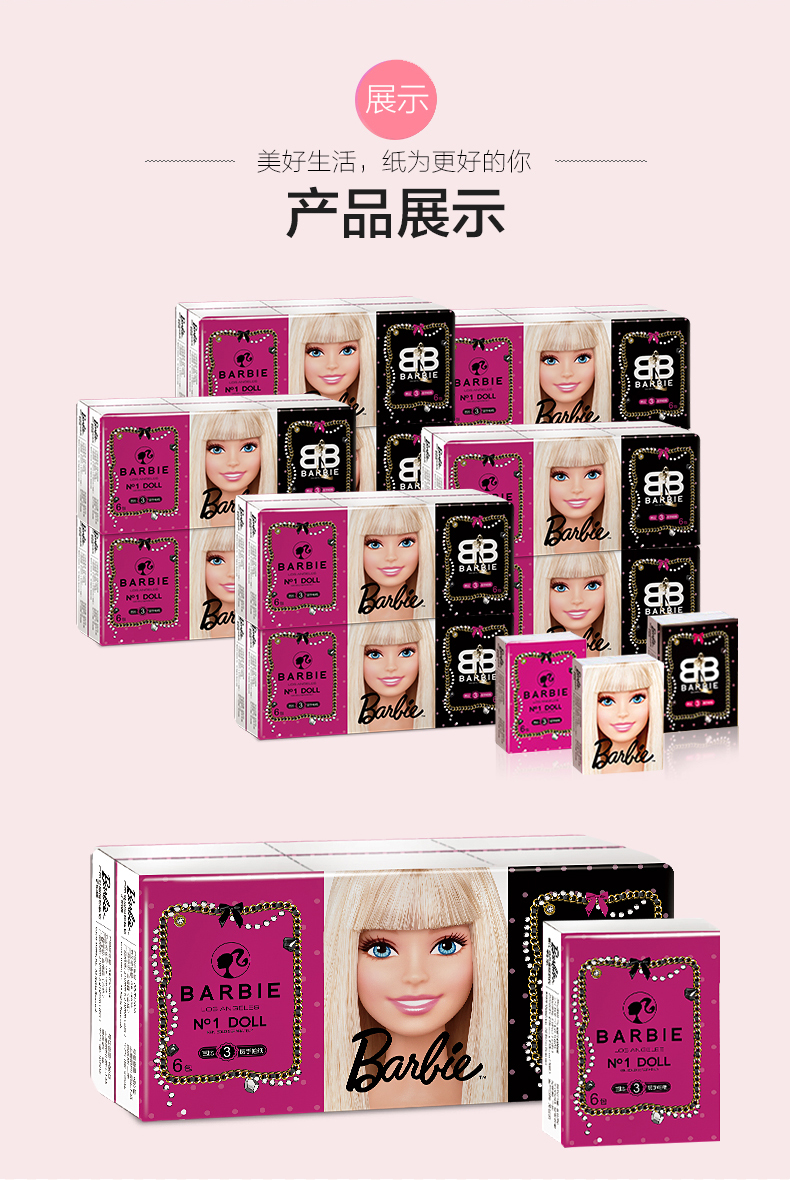 芭比 可爱便携式迷你小包纸巾加厚餐巾纸柔软无香手帕纸 3层60包