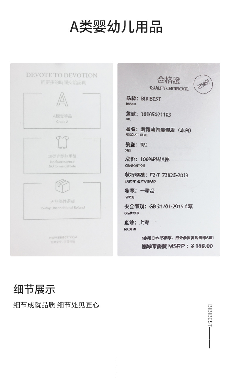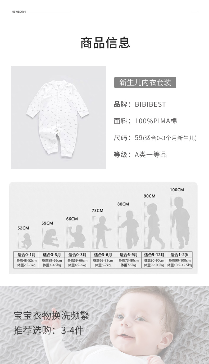 【亏本清仓】bibibest婴儿内衣PIMA美棉连体服分体套装三角哈爬服