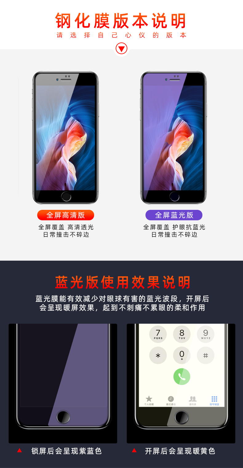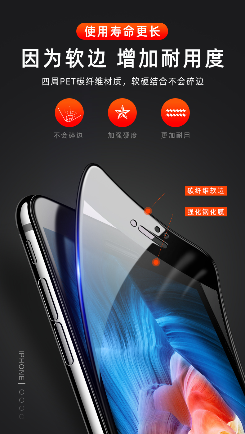 圆滑弧边手感,透至裸机屏幕的守卫者,强抗指纹不翘边,全玻璃强化防爆,高清晰还原,高品质高颜值,足以匹配您高贵的爱机!