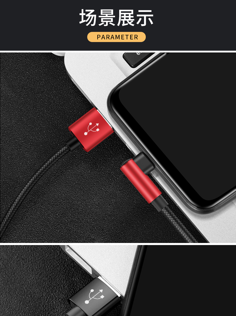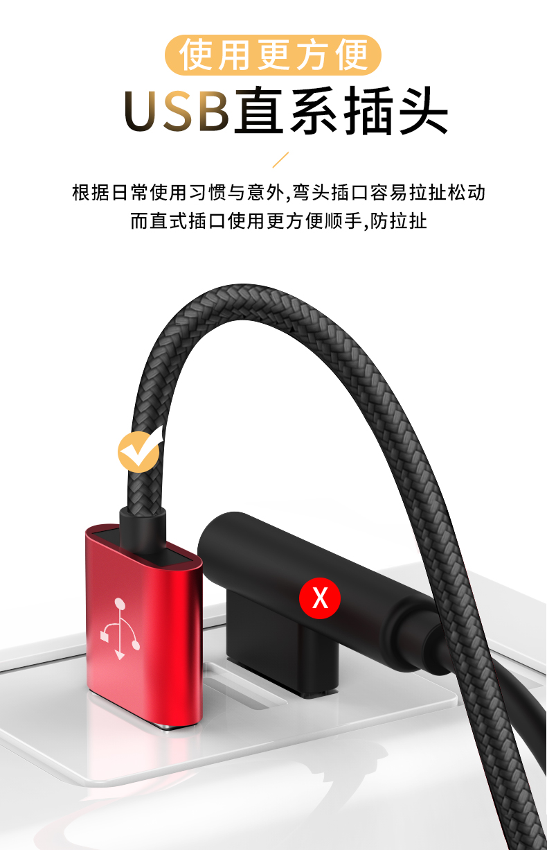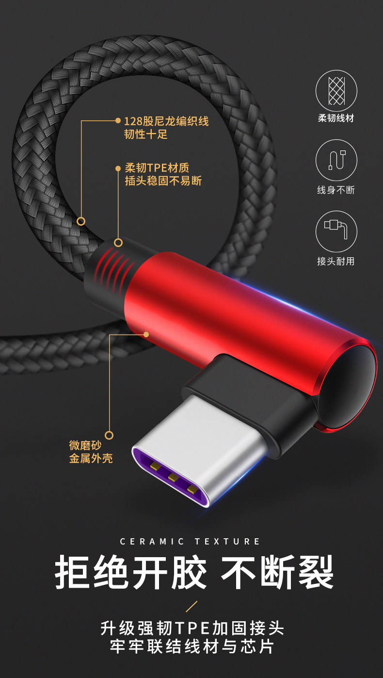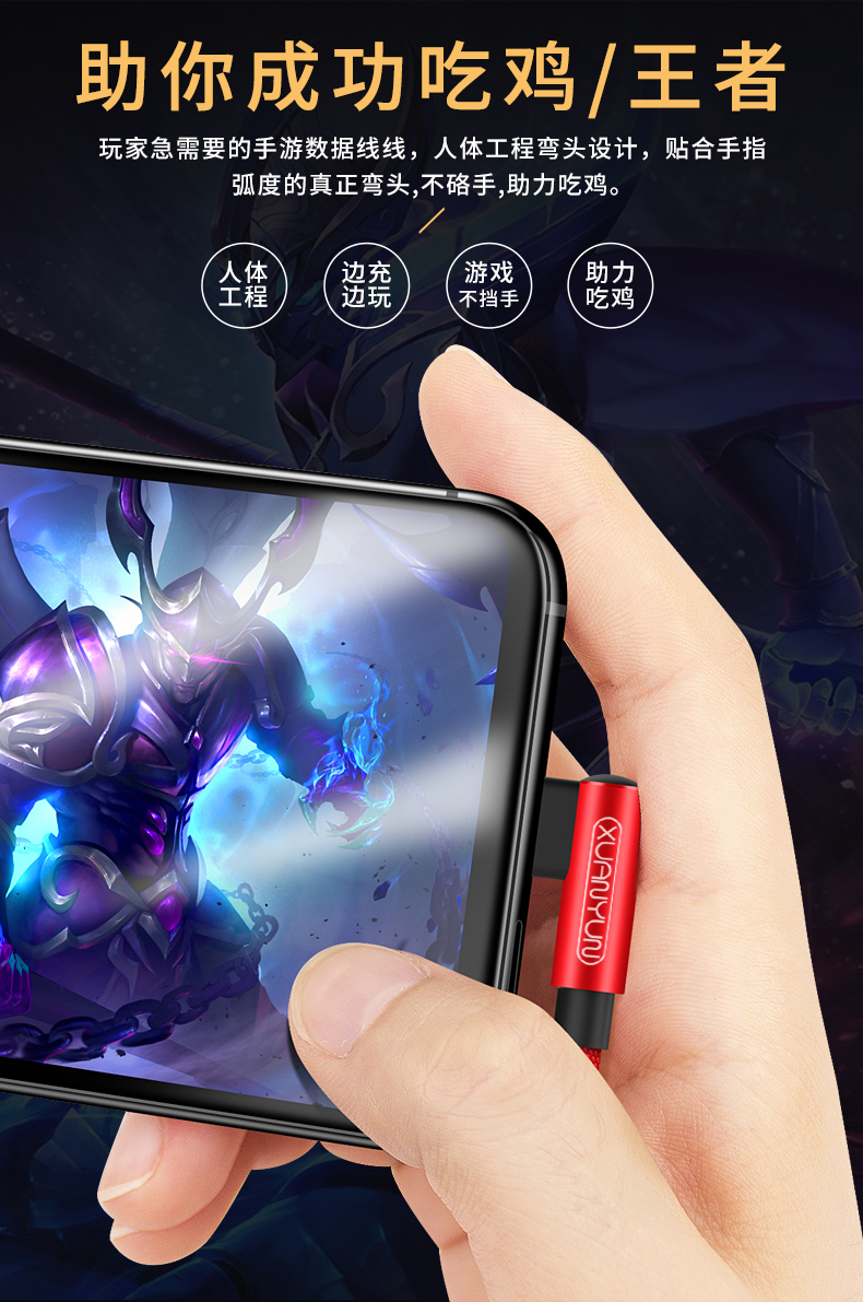 弯头数据线,专为游戏而生!结实耐用,柔韧抗拉编织线,90°弯头不断电,提速50%,快充不弹窗,边玩边冲更舒适,为游戏党量身打造~