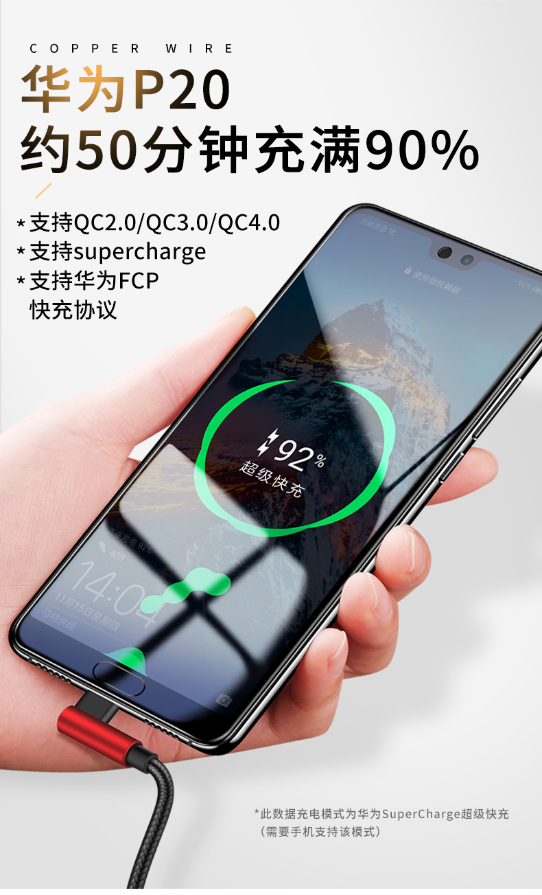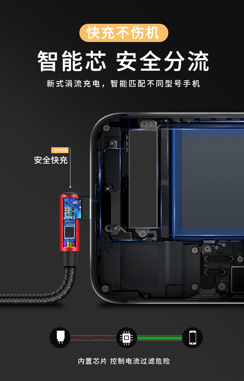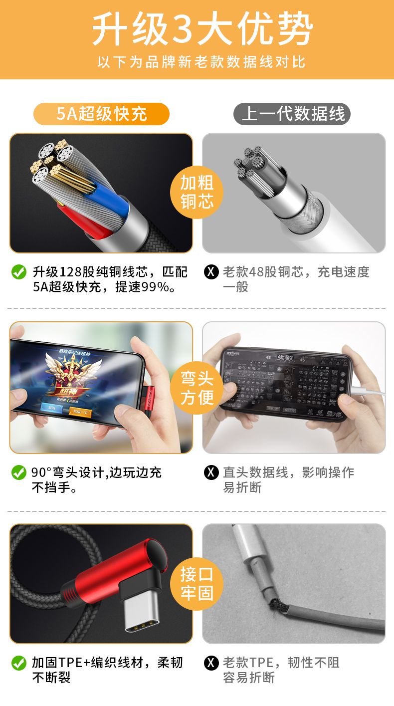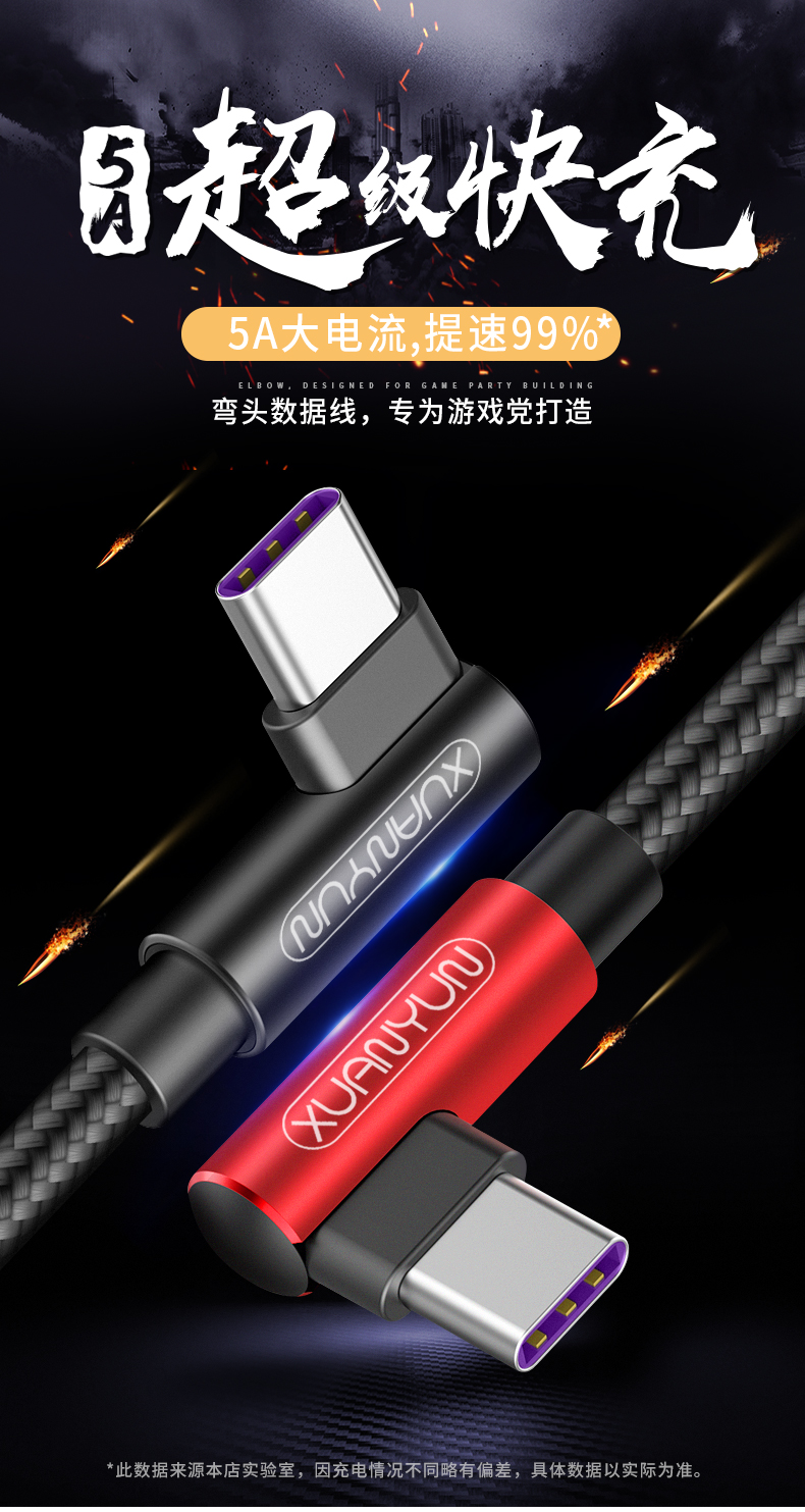 弯头数据线,专为游戏而生!结实耐用,柔韧抗拉编织线,90°弯头不断电,提速50%,快充不弹窗,边玩边冲更舒适,为游戏党量身打造~