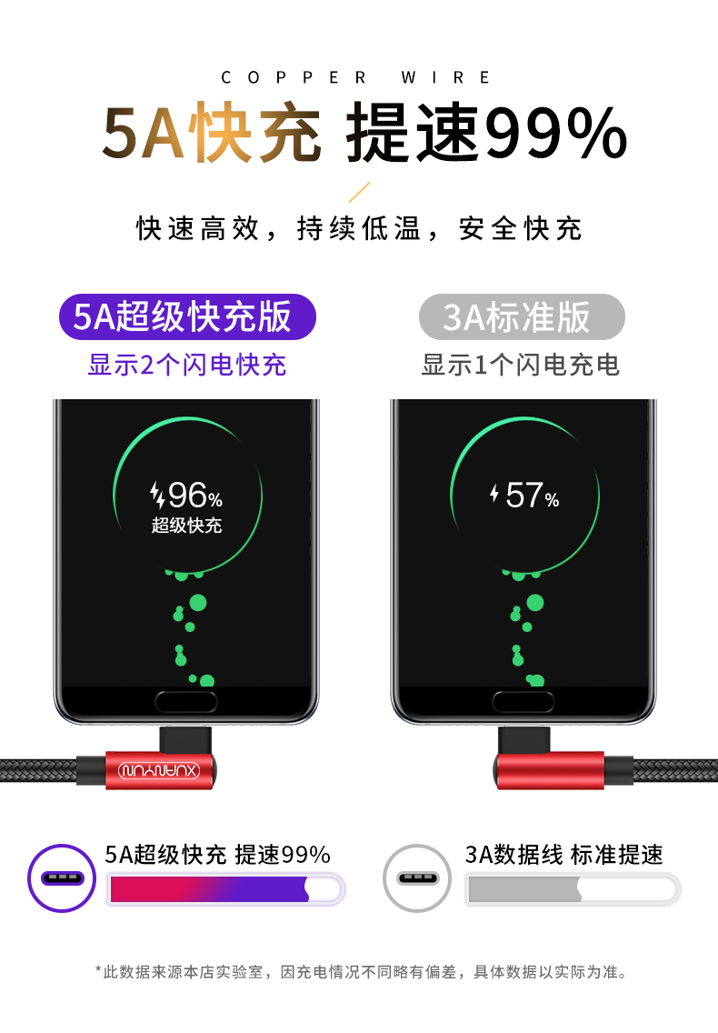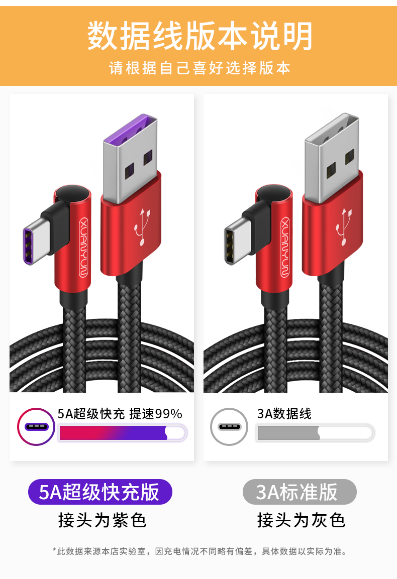 type-c数据线5a超级快充适用华为mate9mate10pro充电线三星小米8mix原裝正品荣耀v8v9v10华为P9P10P20pro闪充