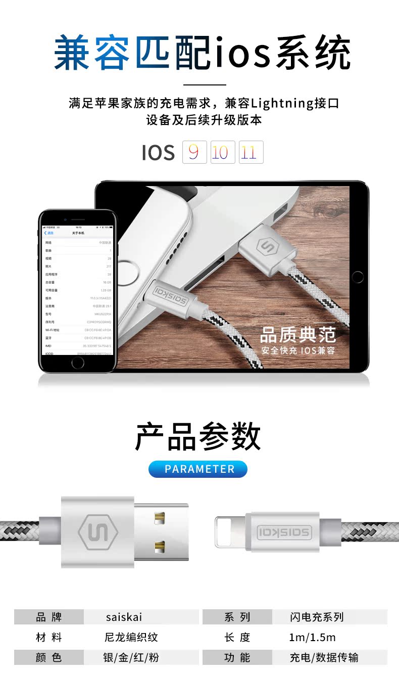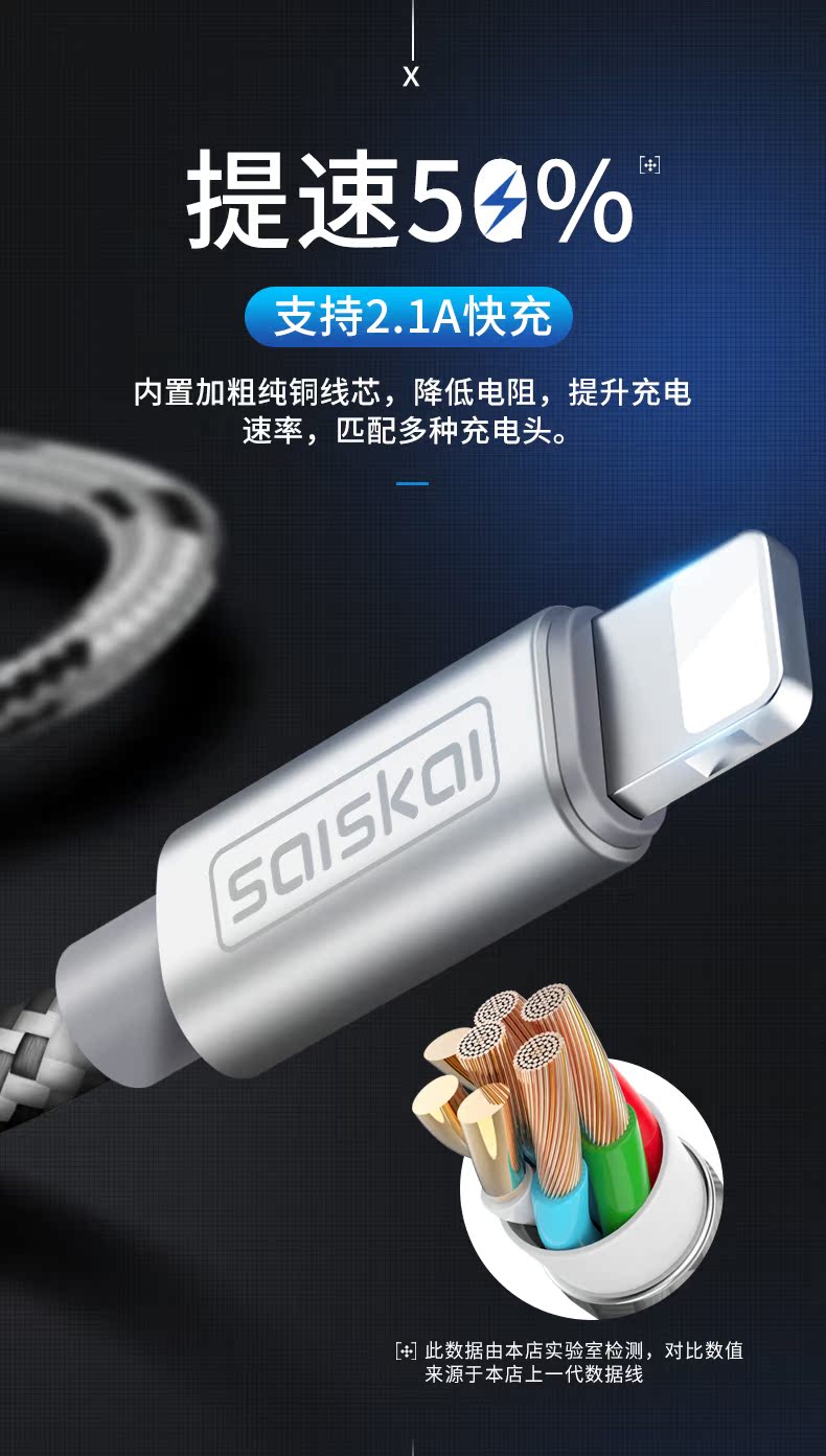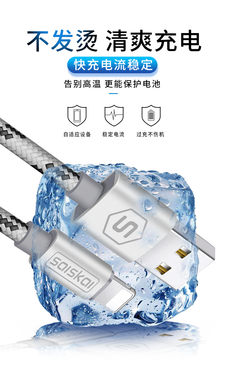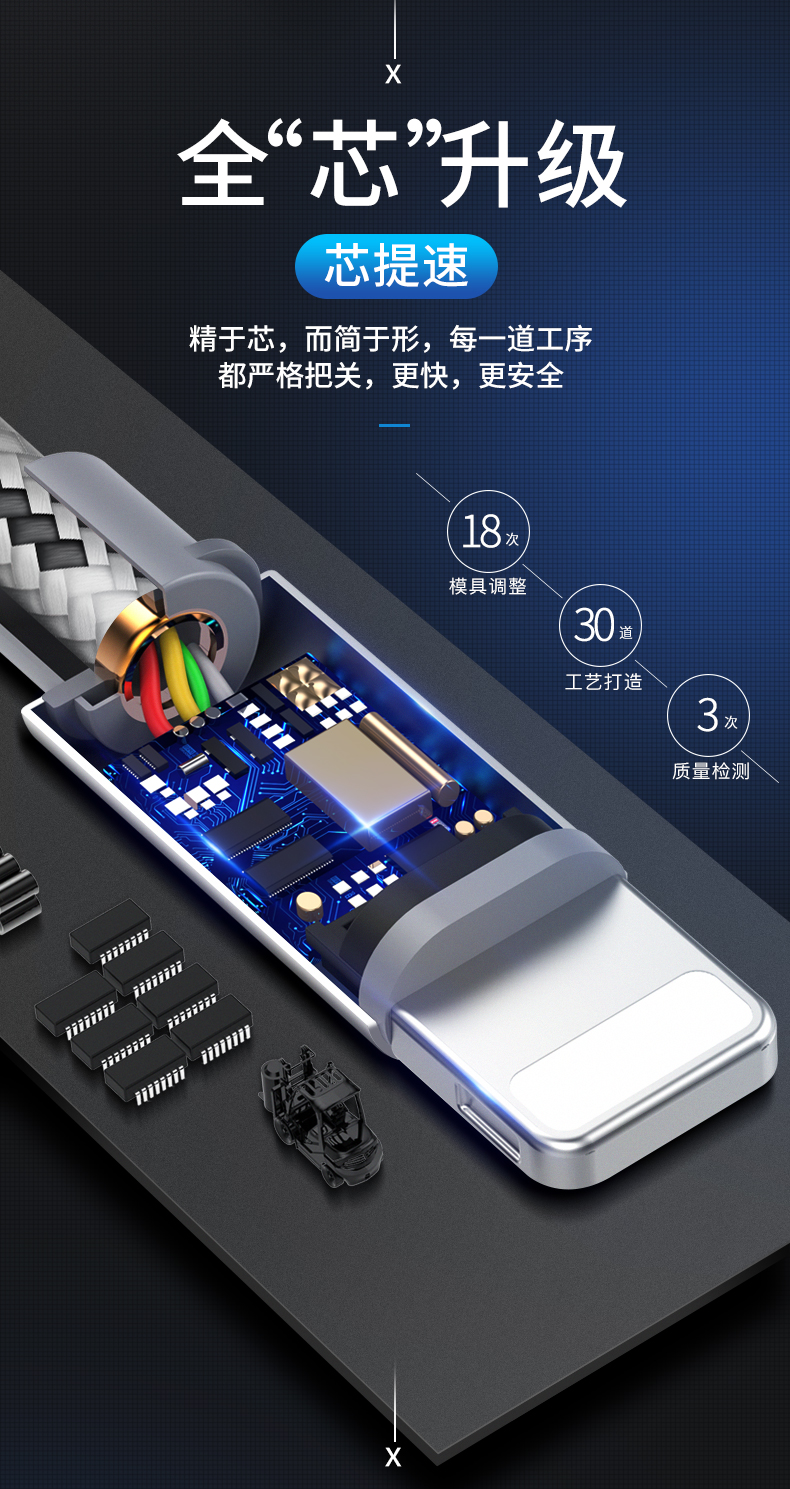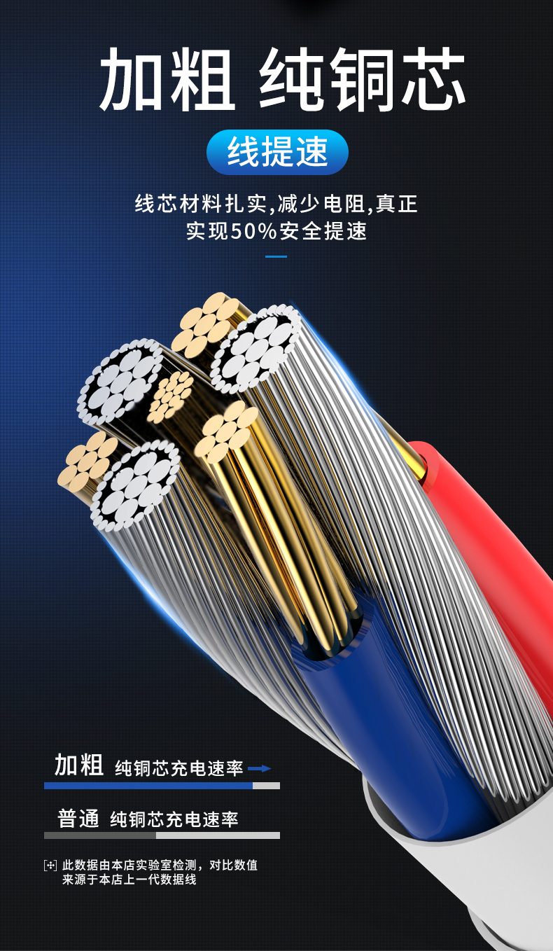 铜芯充电更快,够粗才够快提速50%,智能芯片,不弹窗,尼龙编织柔韧抗拉,稳定输出不发烫,经久耐用!【赠运费险】