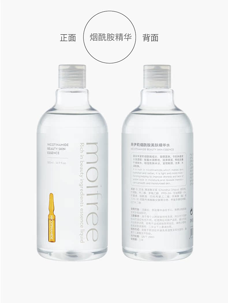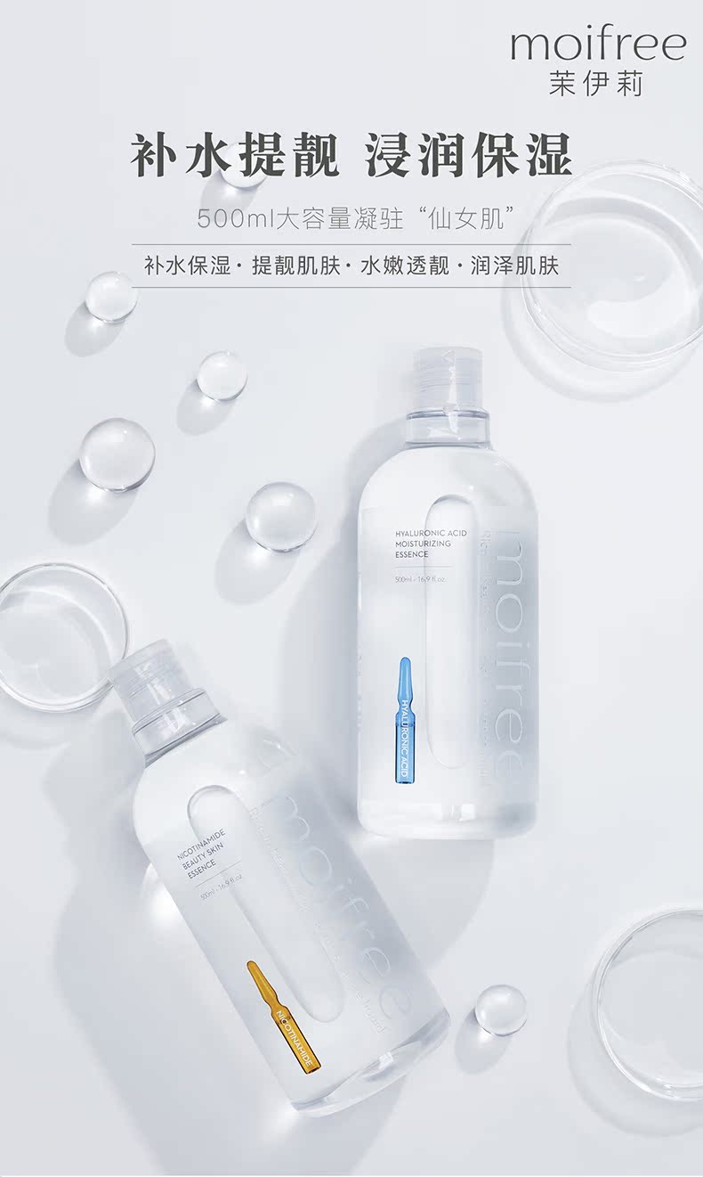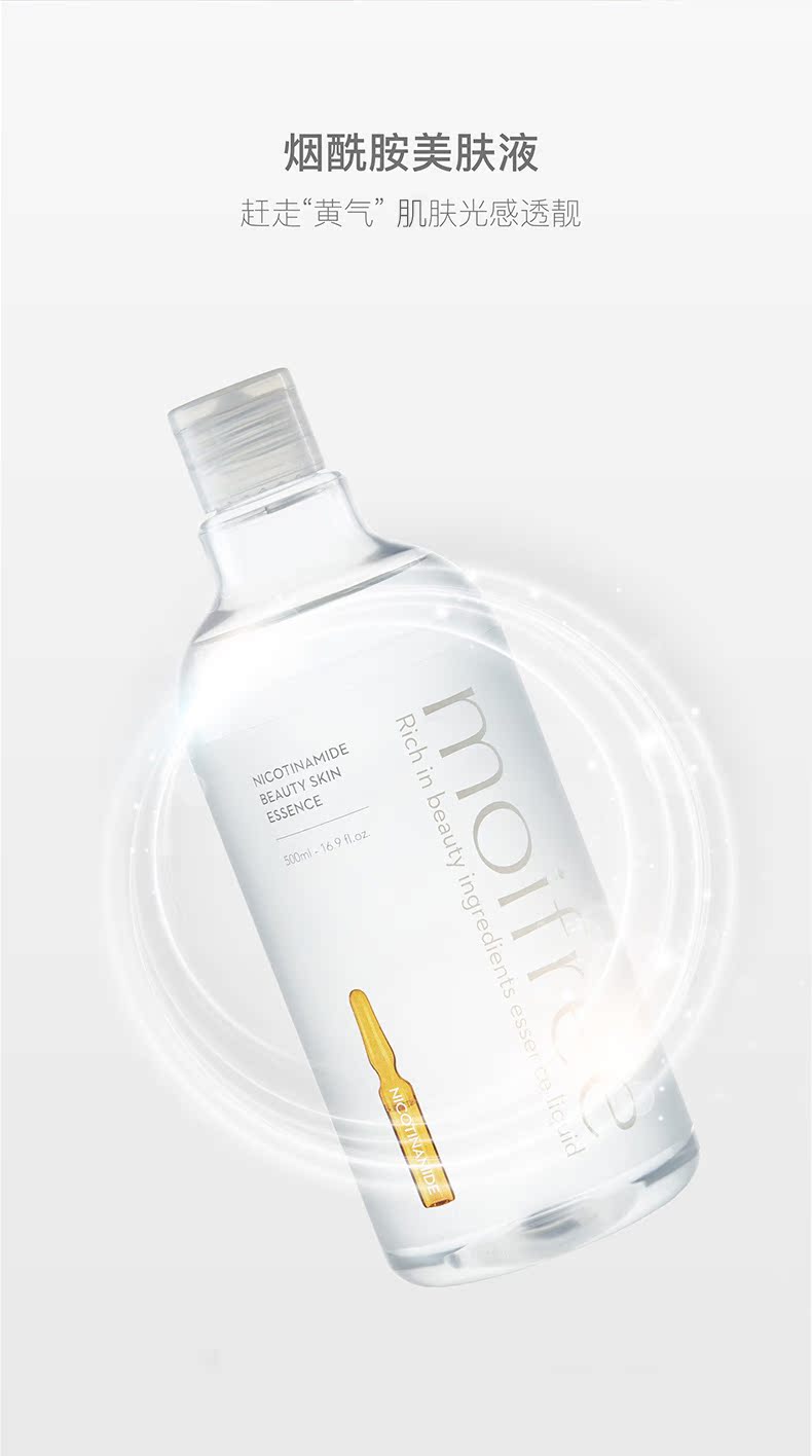 500ml大容量,富含玻尿酸和烟酰胺多种补水活肤精华,能有效的滋养肌肤,提亮肤色!改善细纹,让肌肤水润光泽