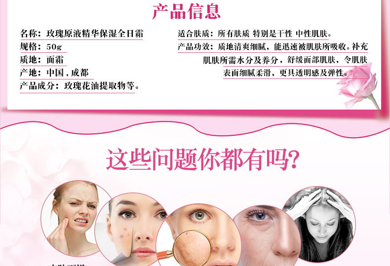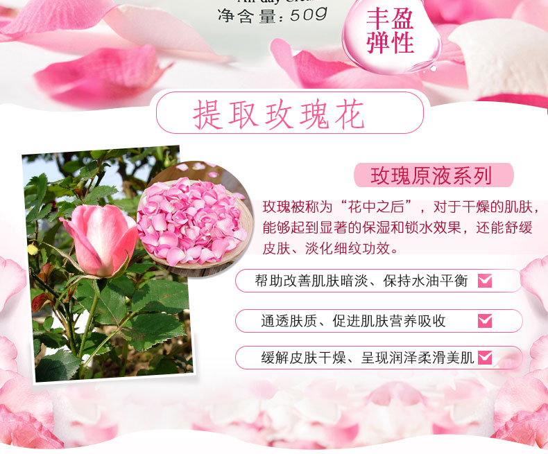 梵洁诗玫瑰原液精华保湿全日霜50g补水滋润保湿霜旗舰官网正品店