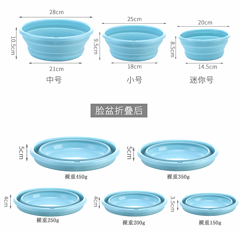 可折叠脸盆家用便携式折叠盆旅行旅游硅胶洗脸盆伸缩收缩盆大小号