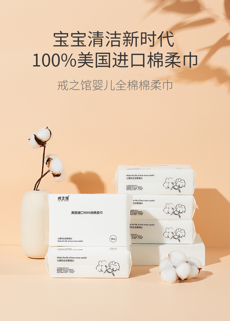 王祖蓝都给自家宝宝用的母婴大牌美国进口全棉柔巾! 【王祖蓝直播热荐!】全棉柔到手5包! 原价55元,新品20元大额券!【券后35元】包邮 第二件27.5,拍两件10包只要62.5