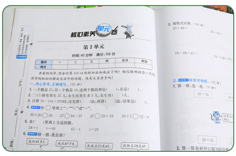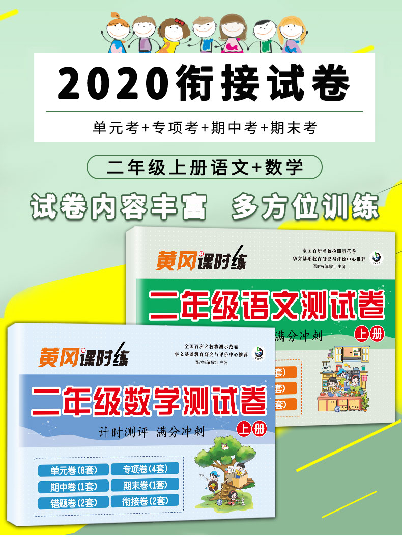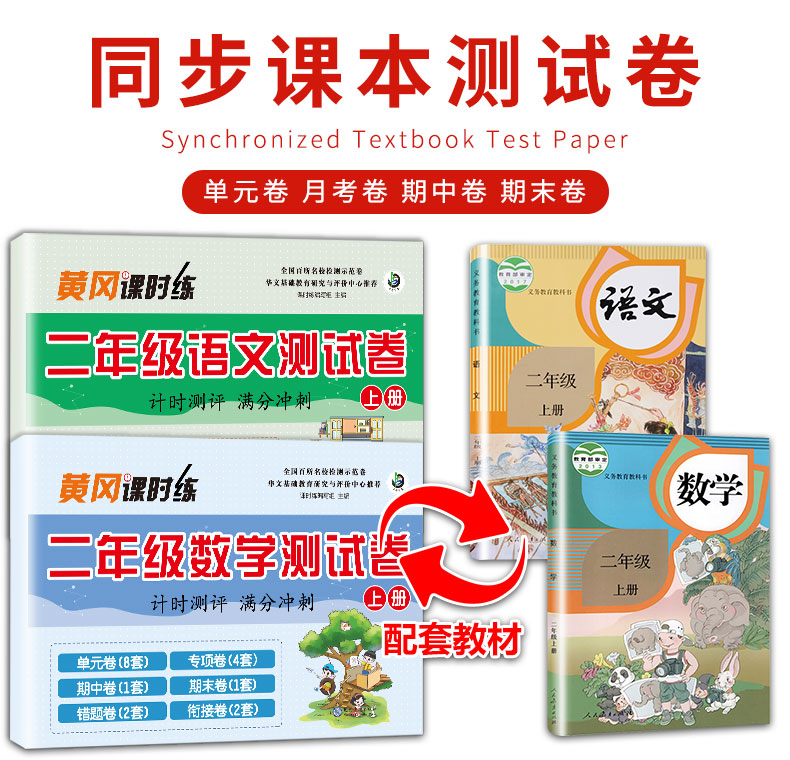 2019版小学二年级上册试卷 全套2本人教版语文数学同步训练辅导资料书 部编版黄冈课时练2年级模拟卷子单元测试卷一课一练口算题卡