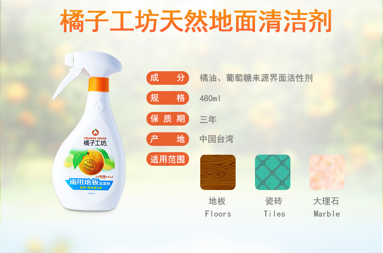 橘子工坊 地板清洁剂强力去污 瓷砖实木地板地砖卫生间瓷砖清洗剂