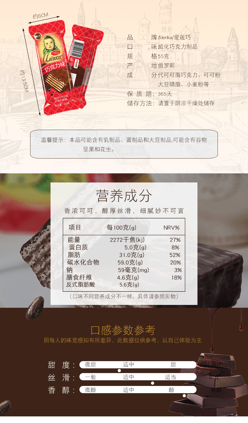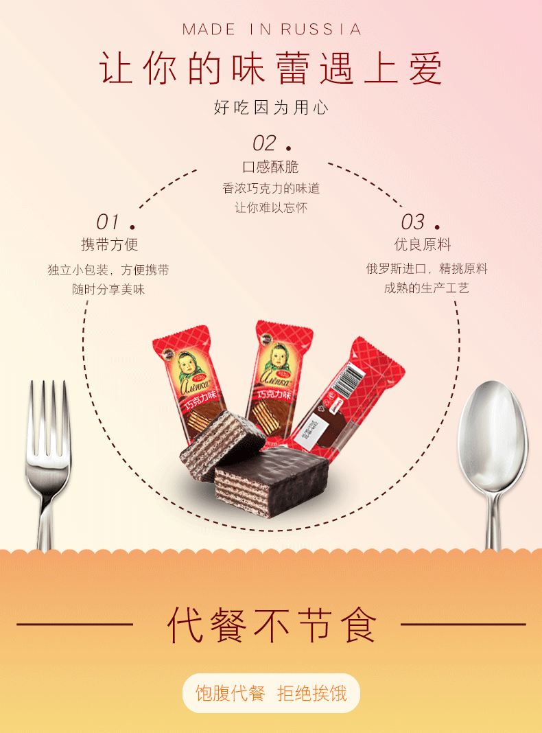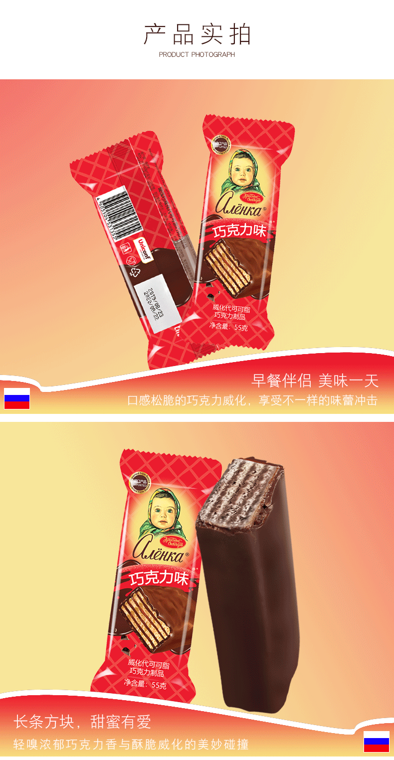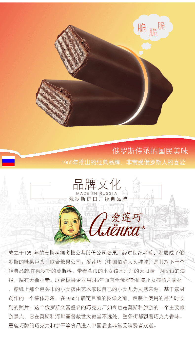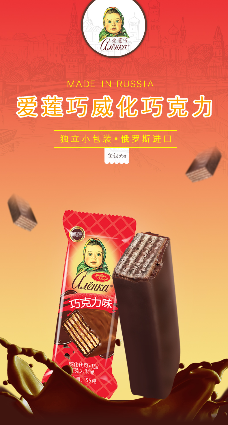 俄罗斯原装进口威化饼干Alenka爱莲巧巧克力夹心饼干大头娃娃零食