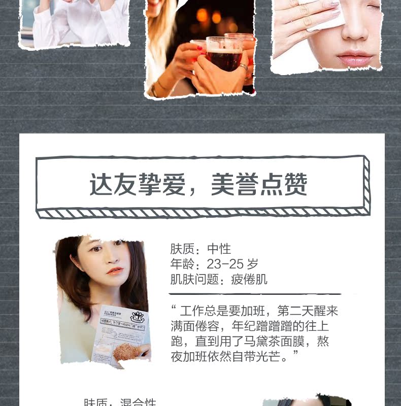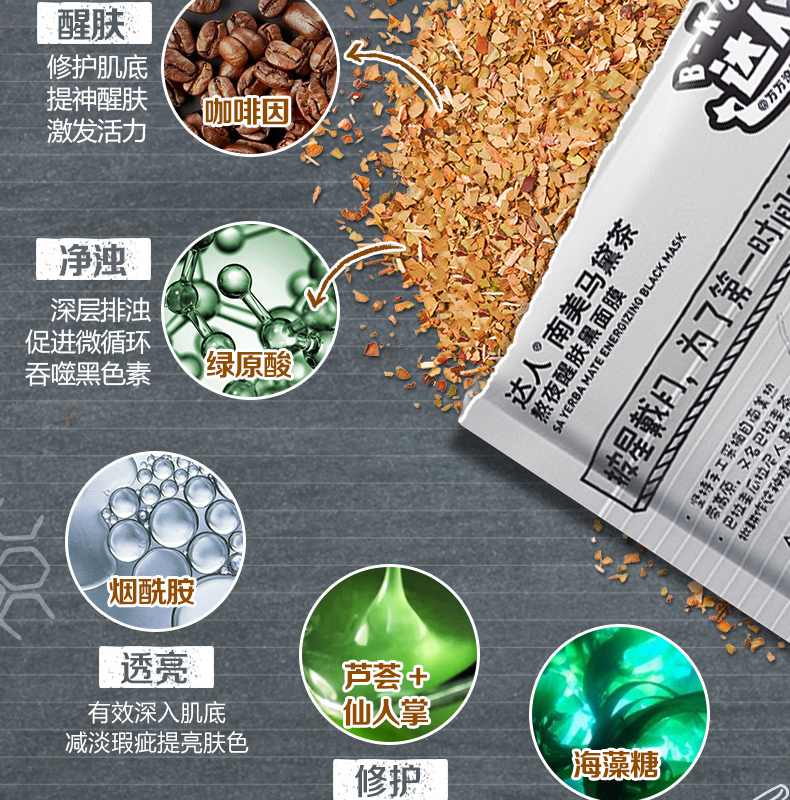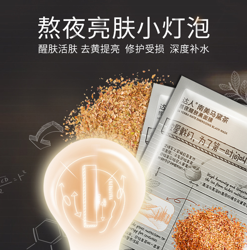达人南美马黛茶熬夜醒肤黑面膜提亮肤色修护受损补水保湿面膜贴女