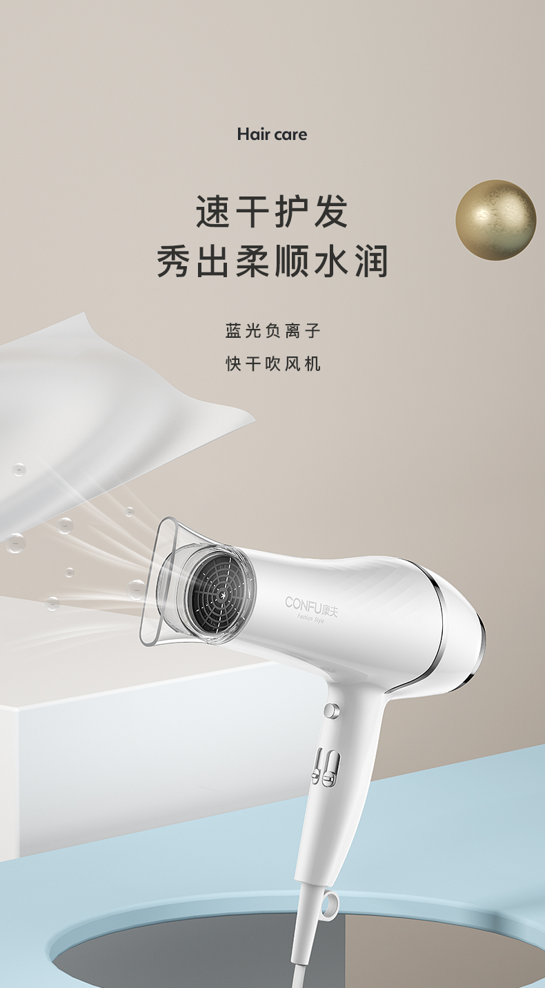 家用专用款!康夫吹风机!6挡调控,2100W大风力,省时又省力,吹干头发仅需几分钟~蓝光负离子护发技术,修复滋润受损发质,塑造自然柔顺的秀发~【赠运费险】