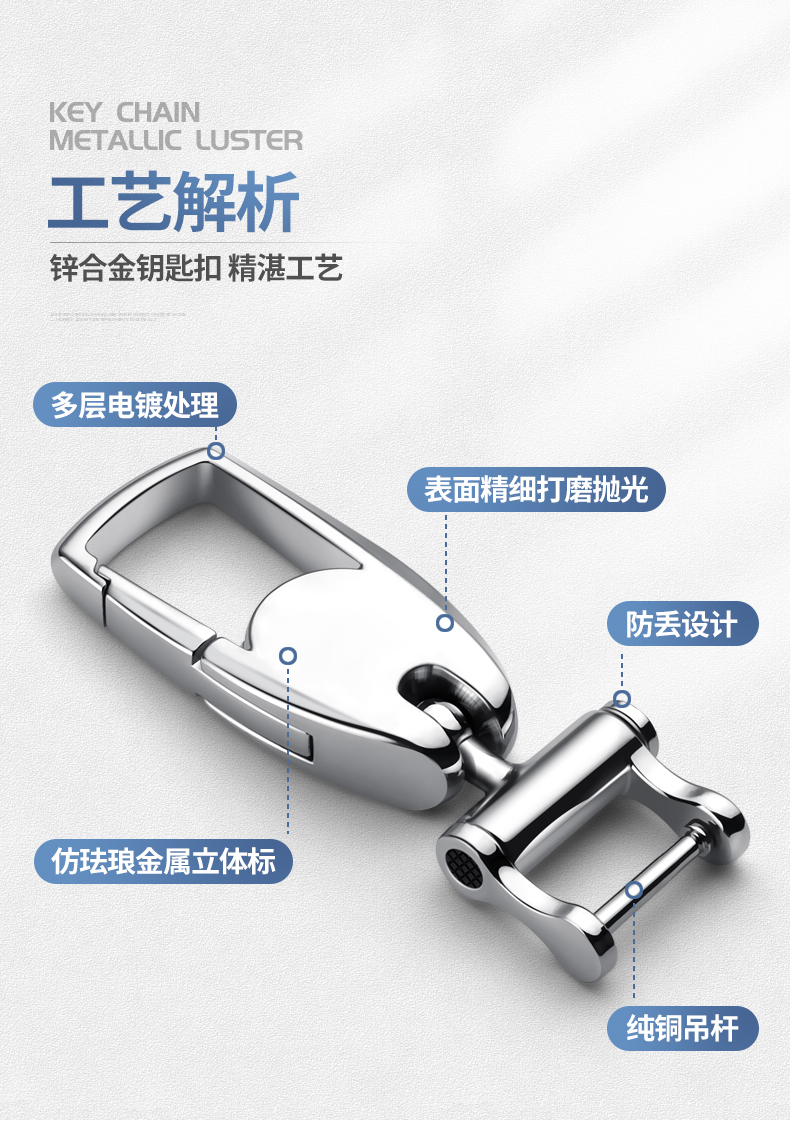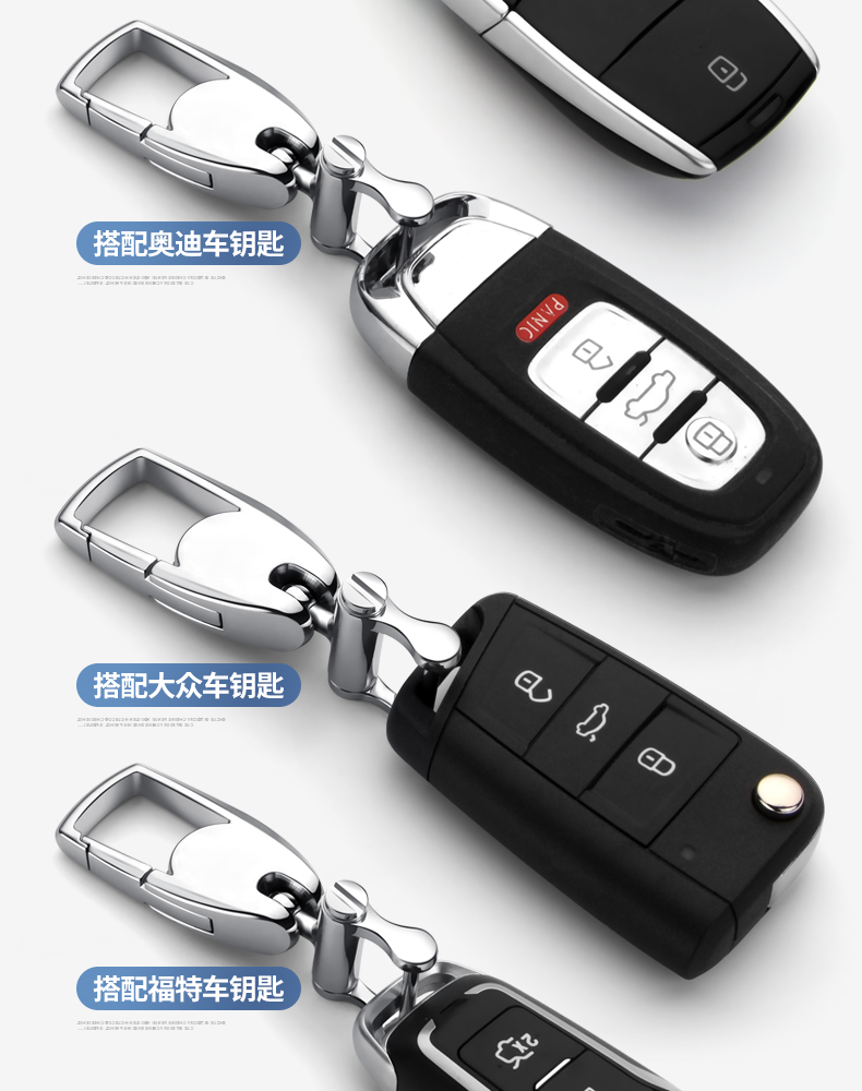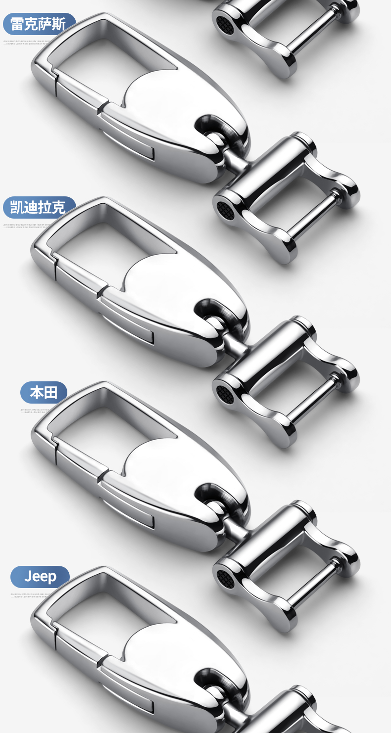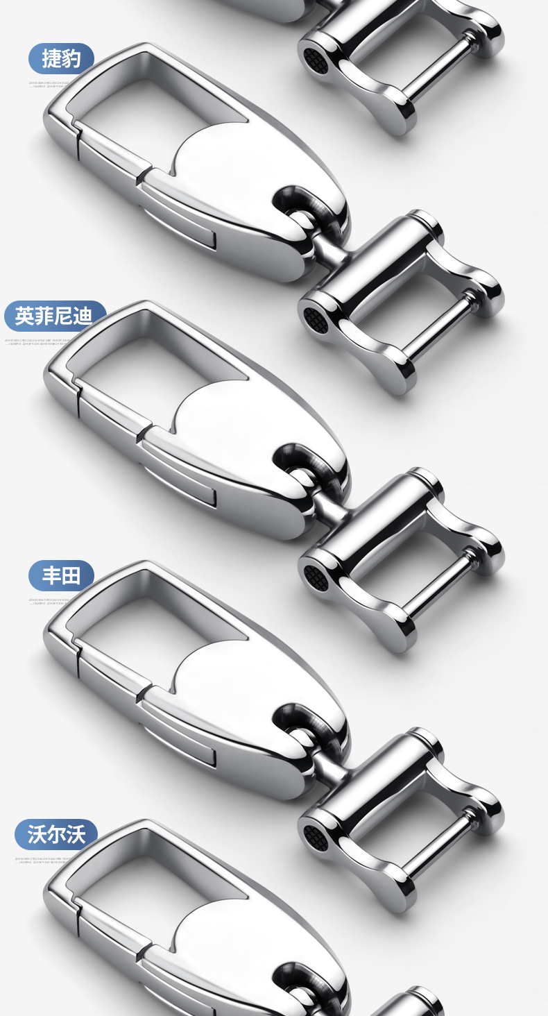 不锈钢汽车钥匙扣,坚硬耐磨损耐摔,360度旋转,专利防丢架构,免拧螺丝防脱落,铁质挂杆不易断,让您的车钥匙更安全,外观简约灵动,各种齐全车型可选