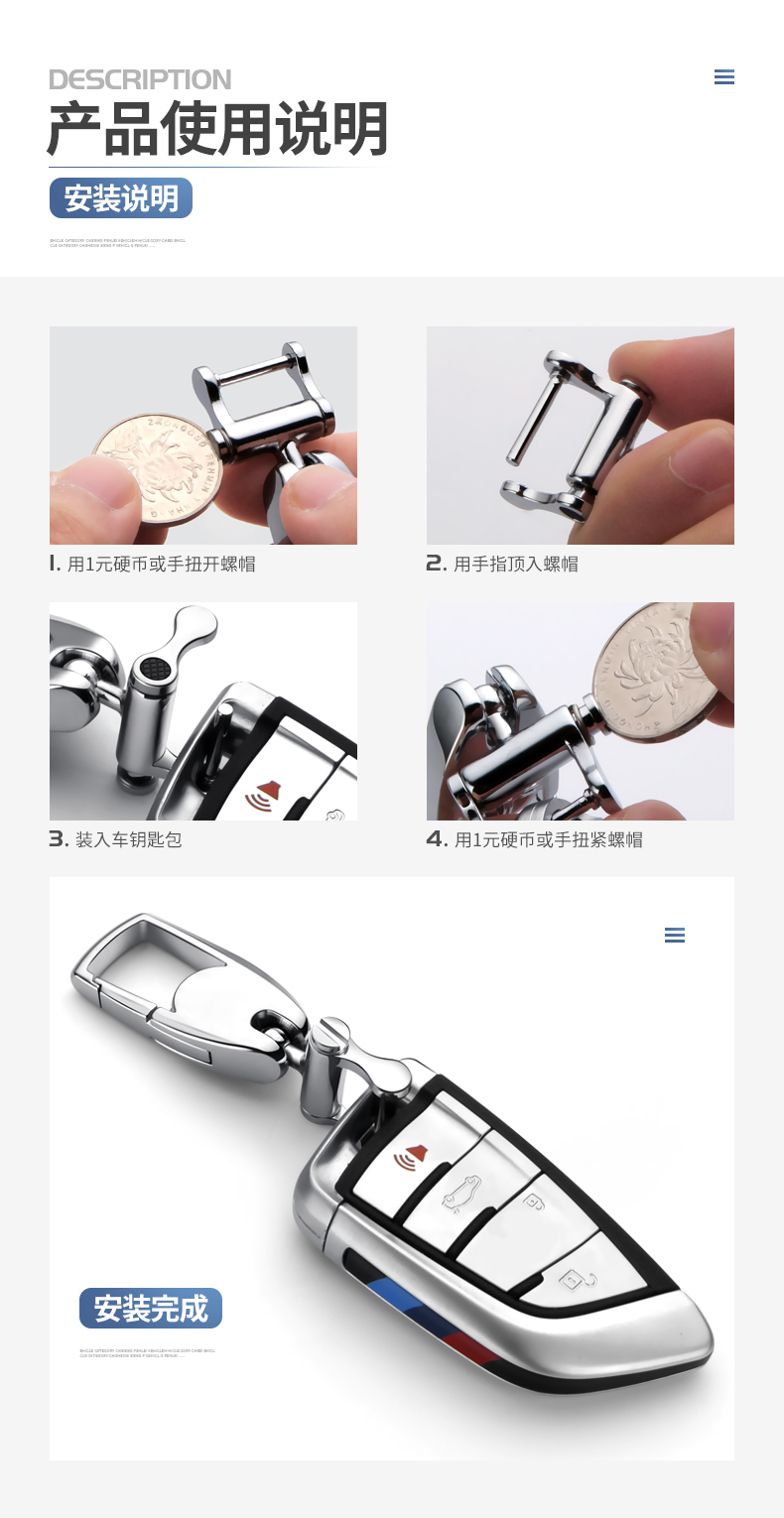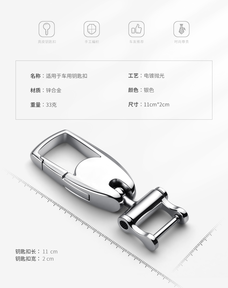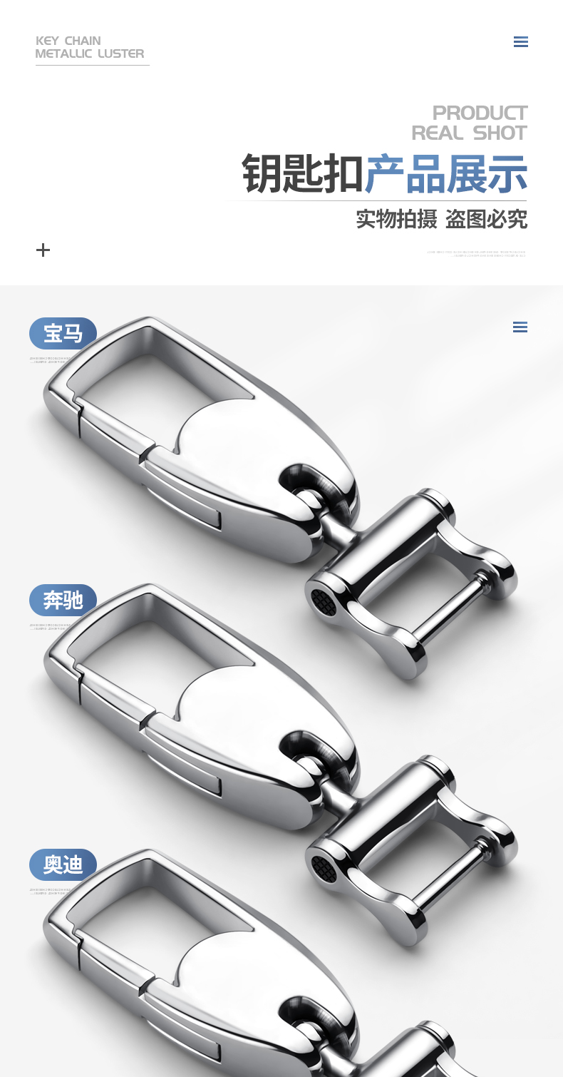 不锈钢汽车钥匙扣,坚硬耐磨损耐摔,360度旋转,专利防丢架构,免拧螺丝防脱落,铁质挂杆不易断,让您的车钥匙更安全,外观简约灵动,各种齐全车型可选