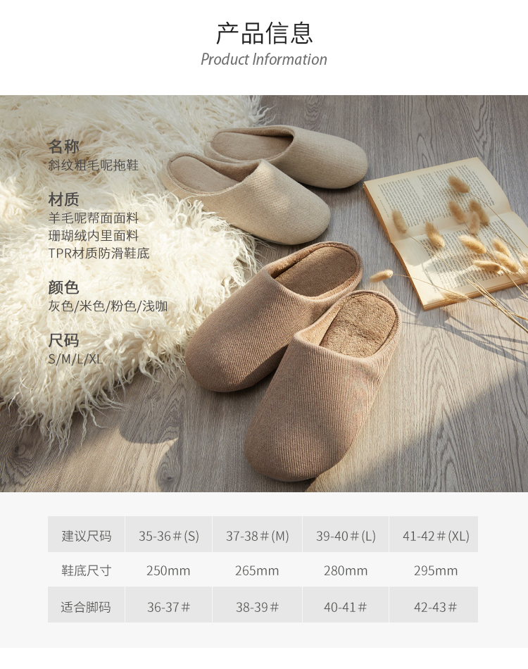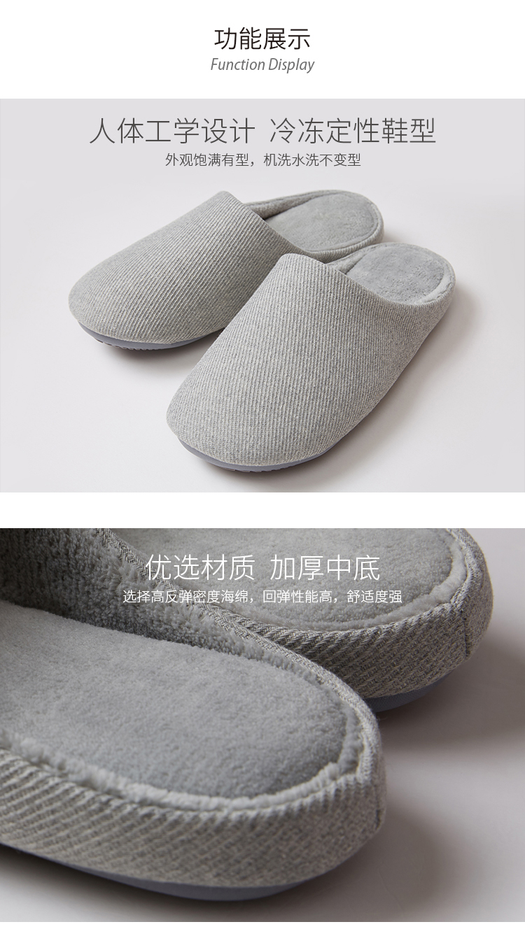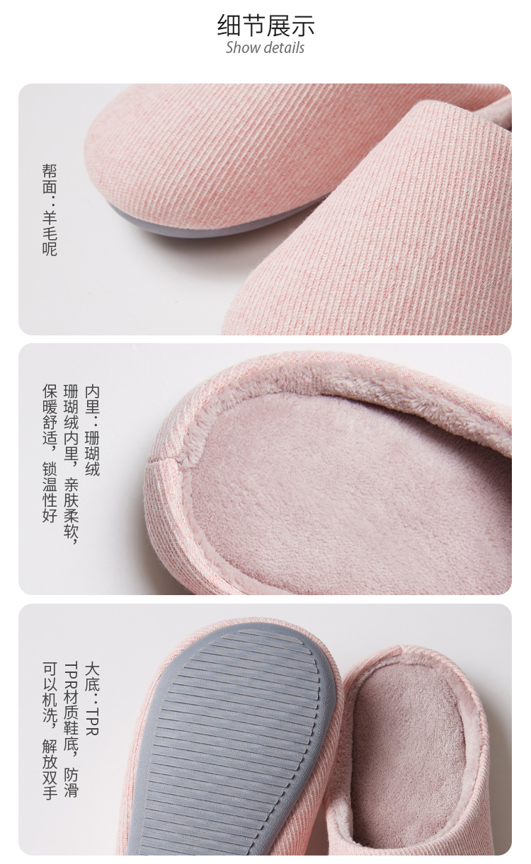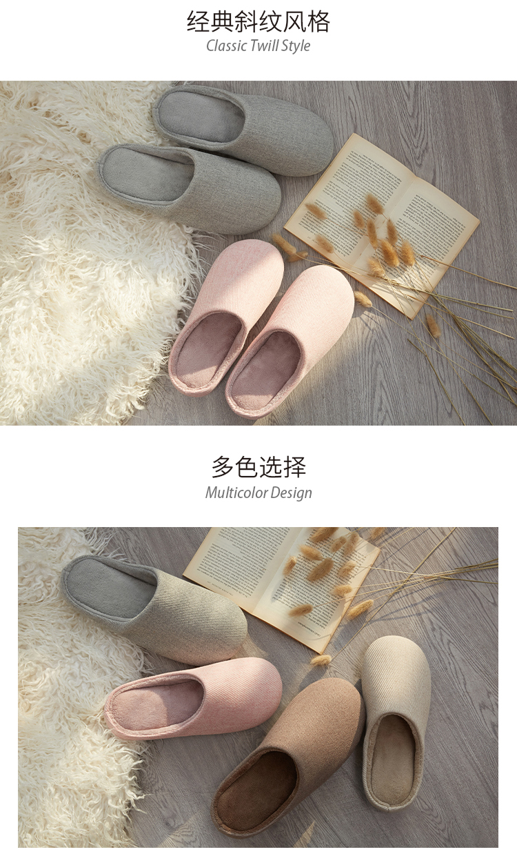 大朴情侣棉拖鞋冬季保暖室内防滑家居拖鞋纯色斜纹家用可水洗棉拖