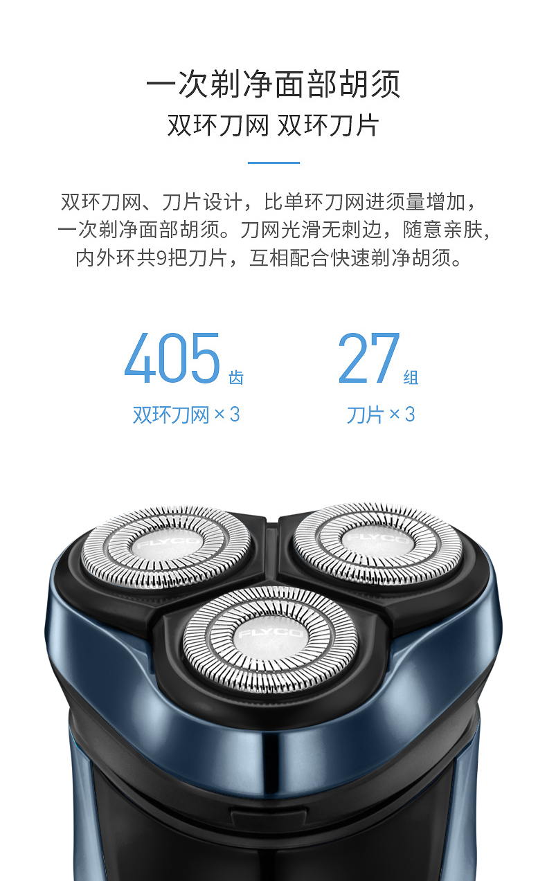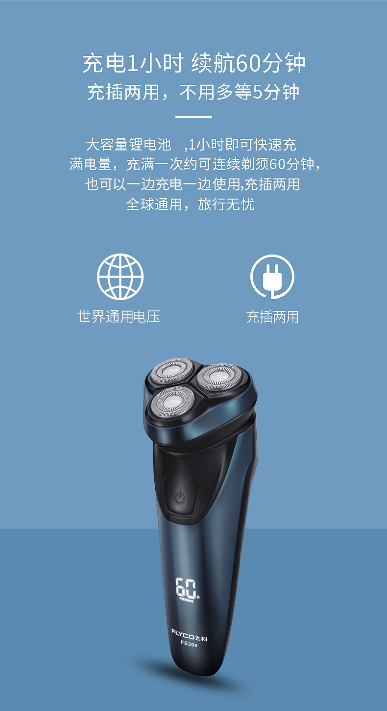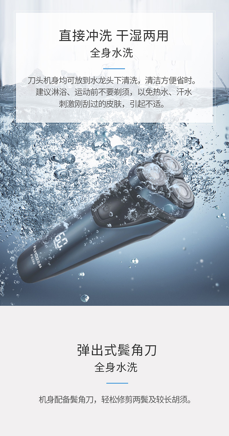 Flyco/飞科电动剃须刀 全身水洗智能充电男士刮胡刀FS390快充