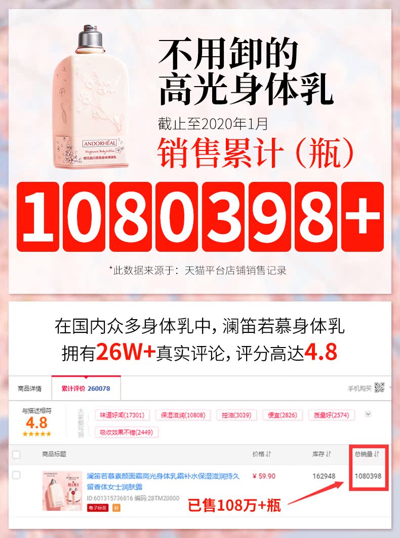 澜笛若慕樱花高光身体乳霜补水保湿滋润秋冬持久留香体女士润肤露