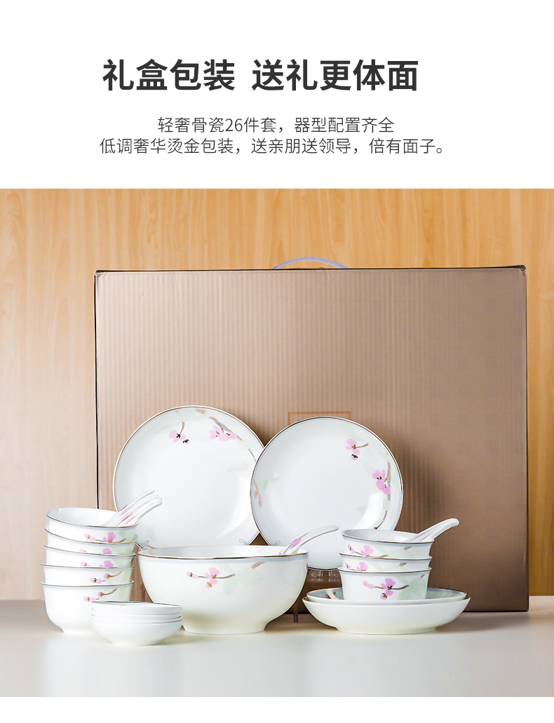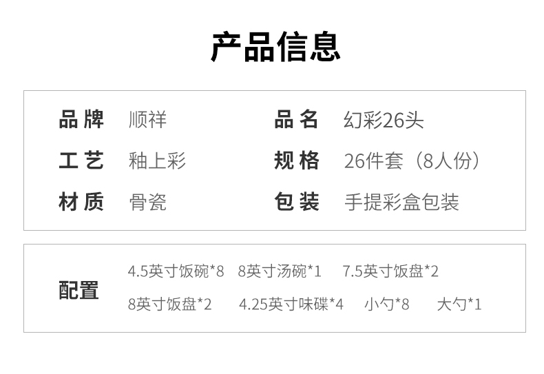 【顺祥陶瓷】给你优质的款待,餐桌上的轻奢主义,优质骨瓷薄如纸白如玉,瓷质光滑细密便于清洗,贴心配置,26件套满足所有场合的使用,享受生活从使用精致餐具开始!!