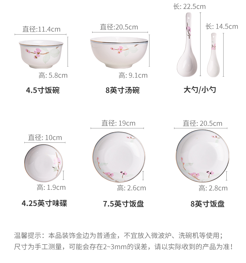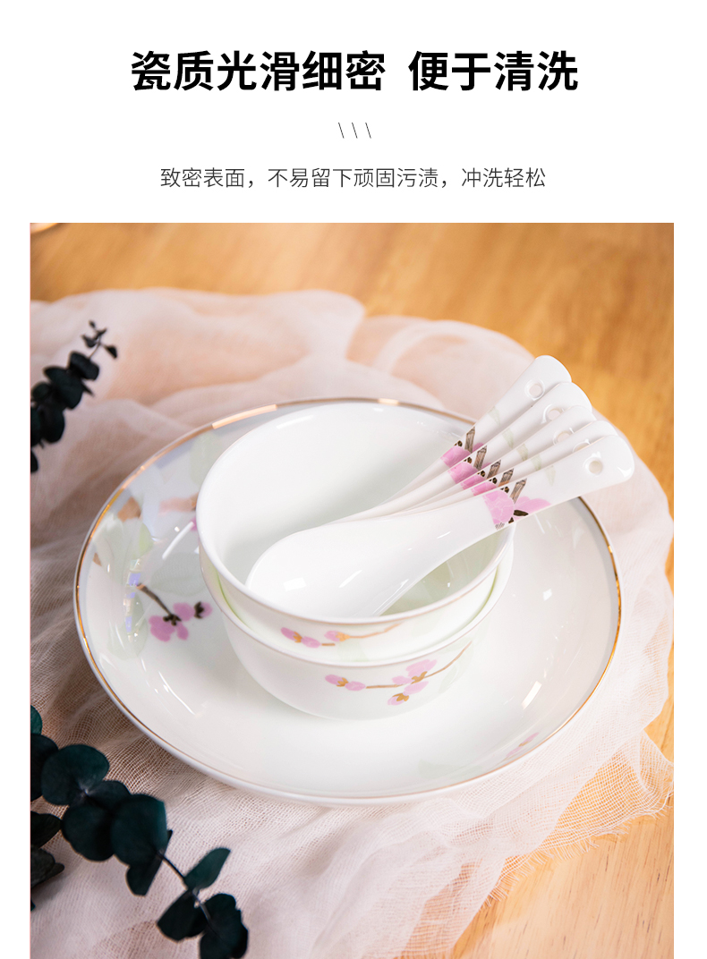 顺祥陶瓷碗碟套装家用组合骨瓷不烫手碗盘餐具创意个性绚丽时光
