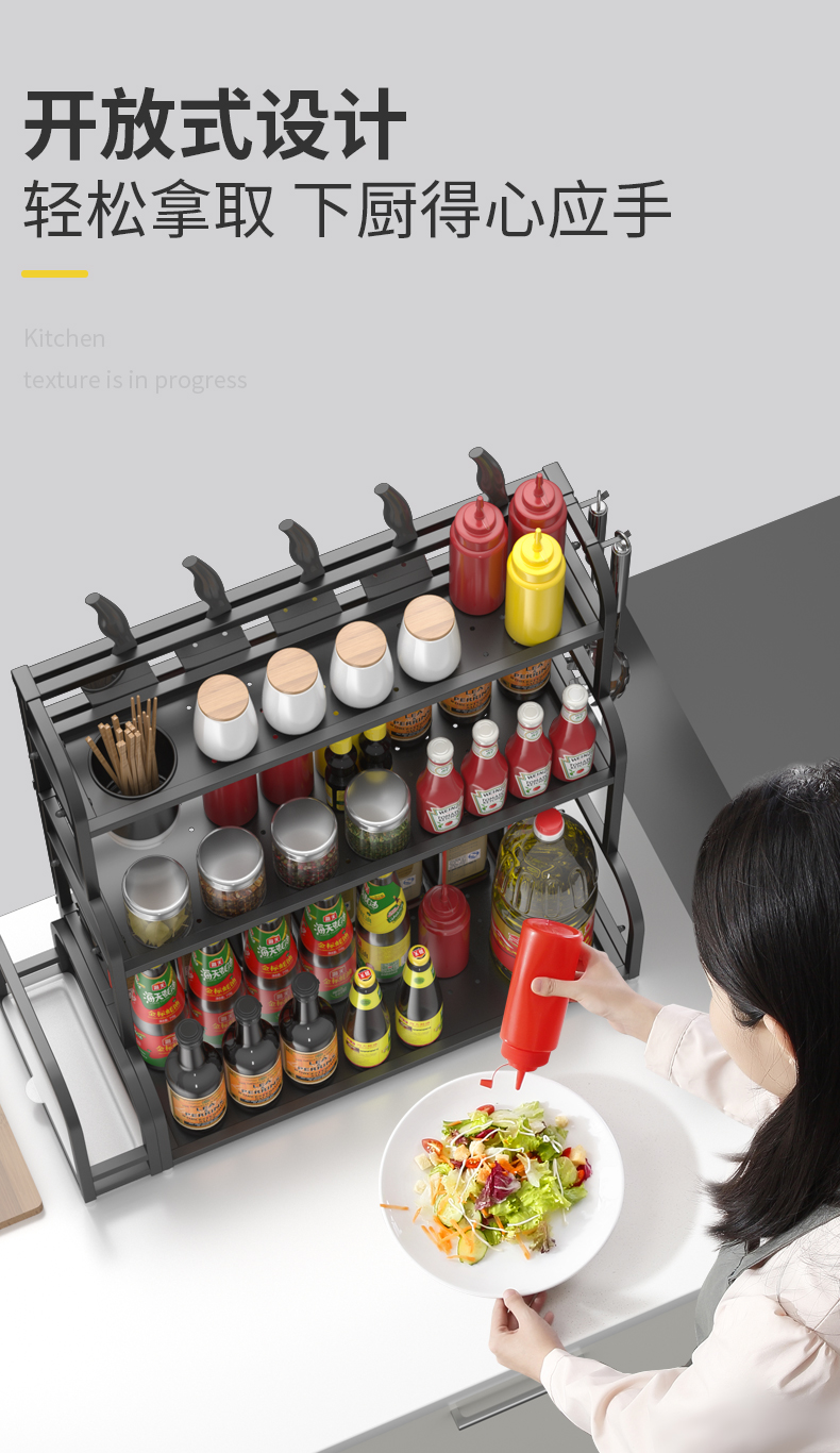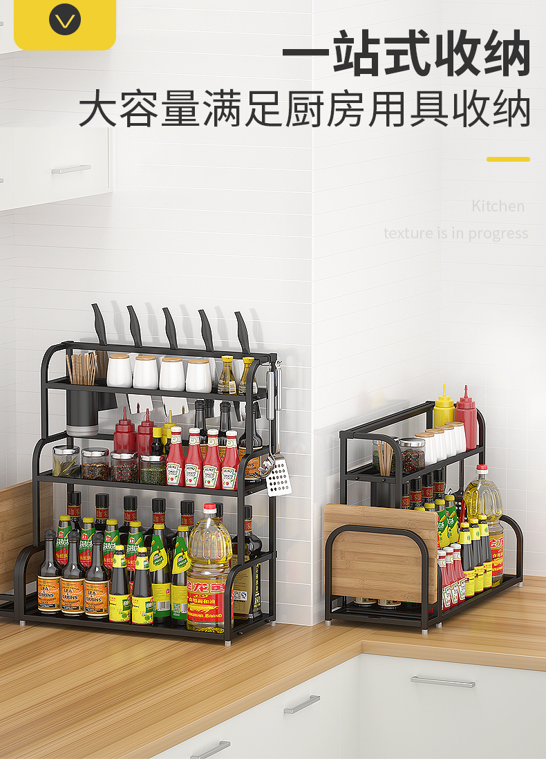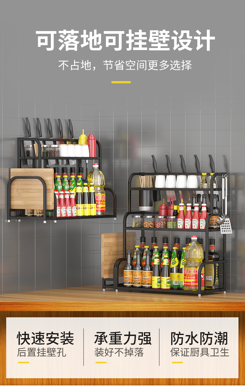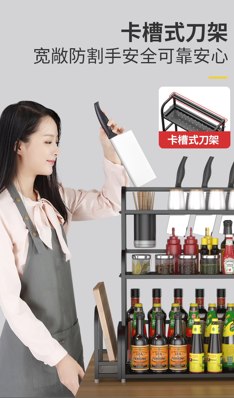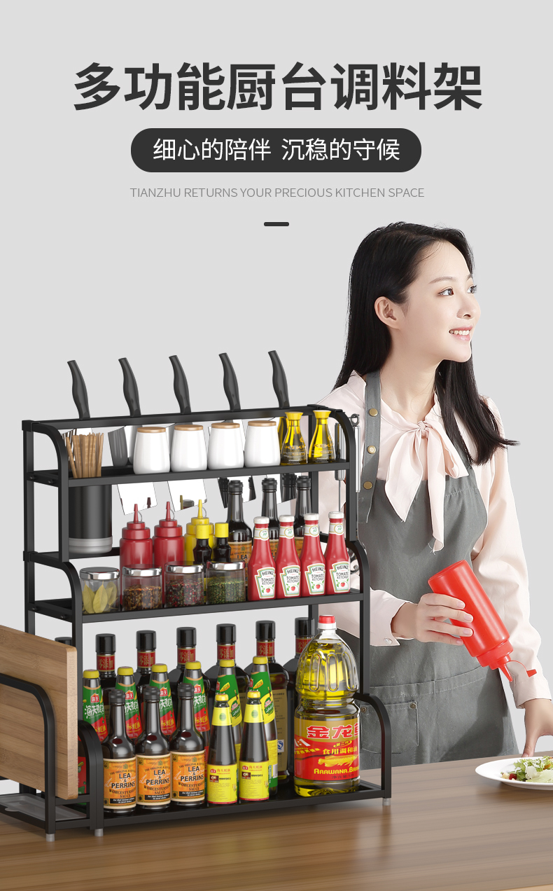 天竹厨房置物架调料架收纳架刀架调味品油盐酱醋置物架用品不锈钢