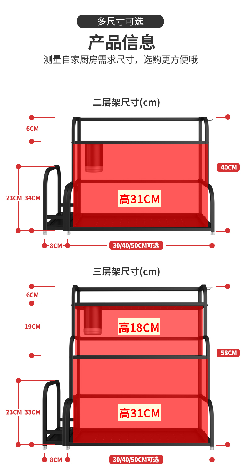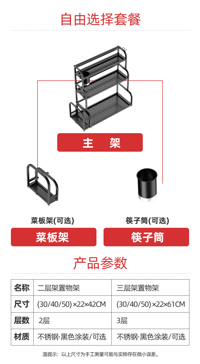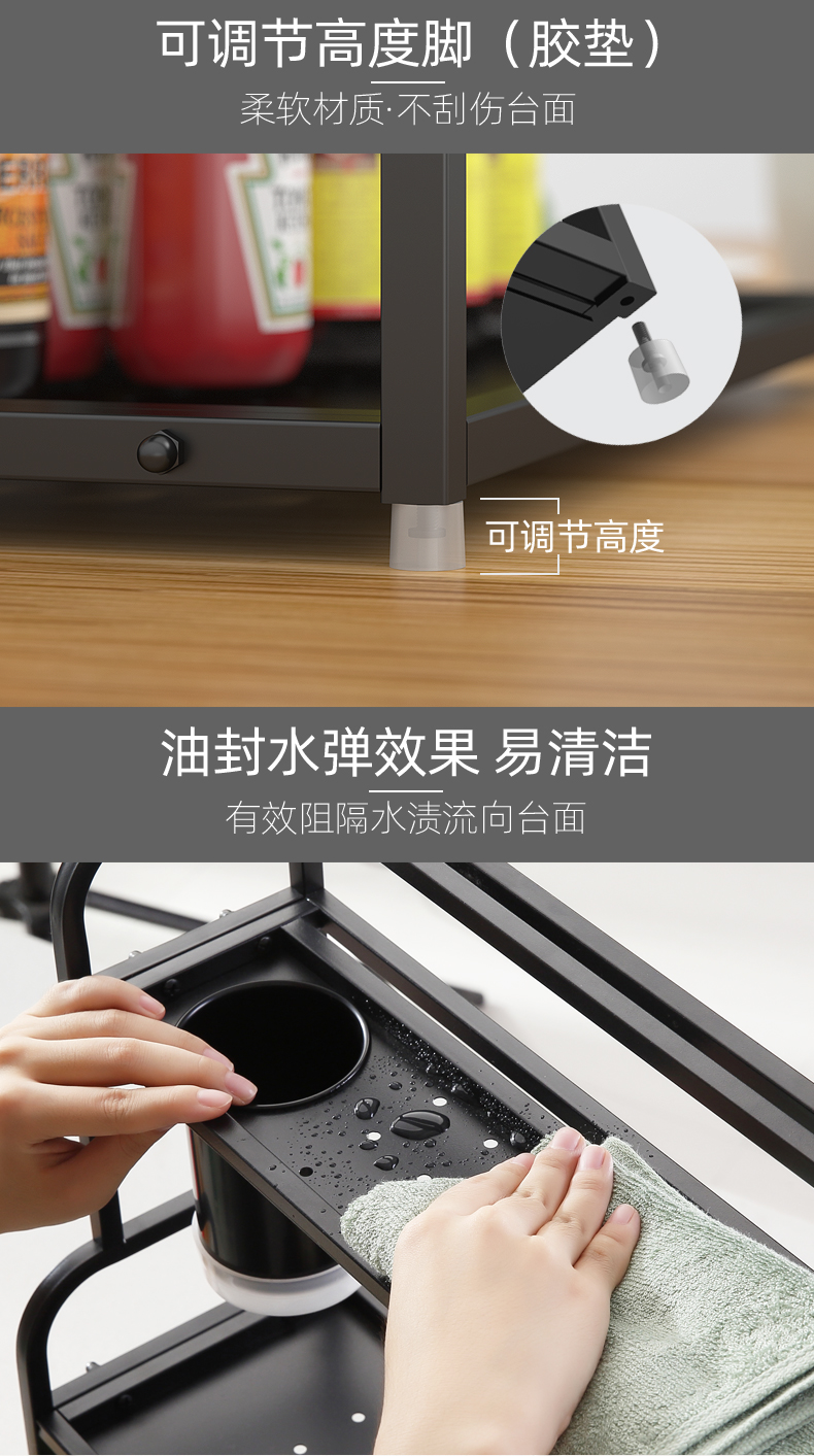 高端厨房置物架,浴室收纳,采用不锈钢管,结实牢固,无毒无害,不生锈,可以自由调节高度,满足不同空间需求,安装简单【破损免费补寄】