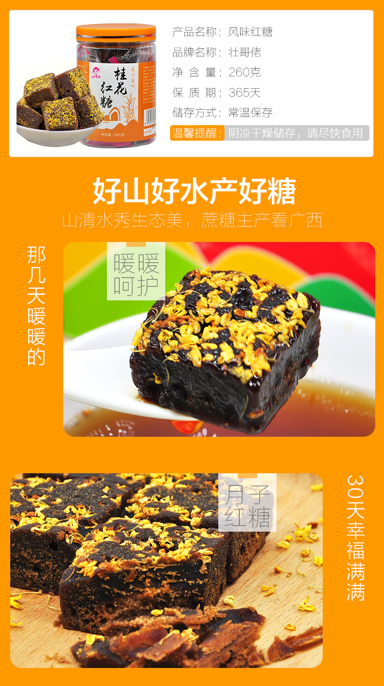 壮哥佬广西桂林特产阳朔桂花红糖块桂花黑糖块罐装纯手工泡茶正宗