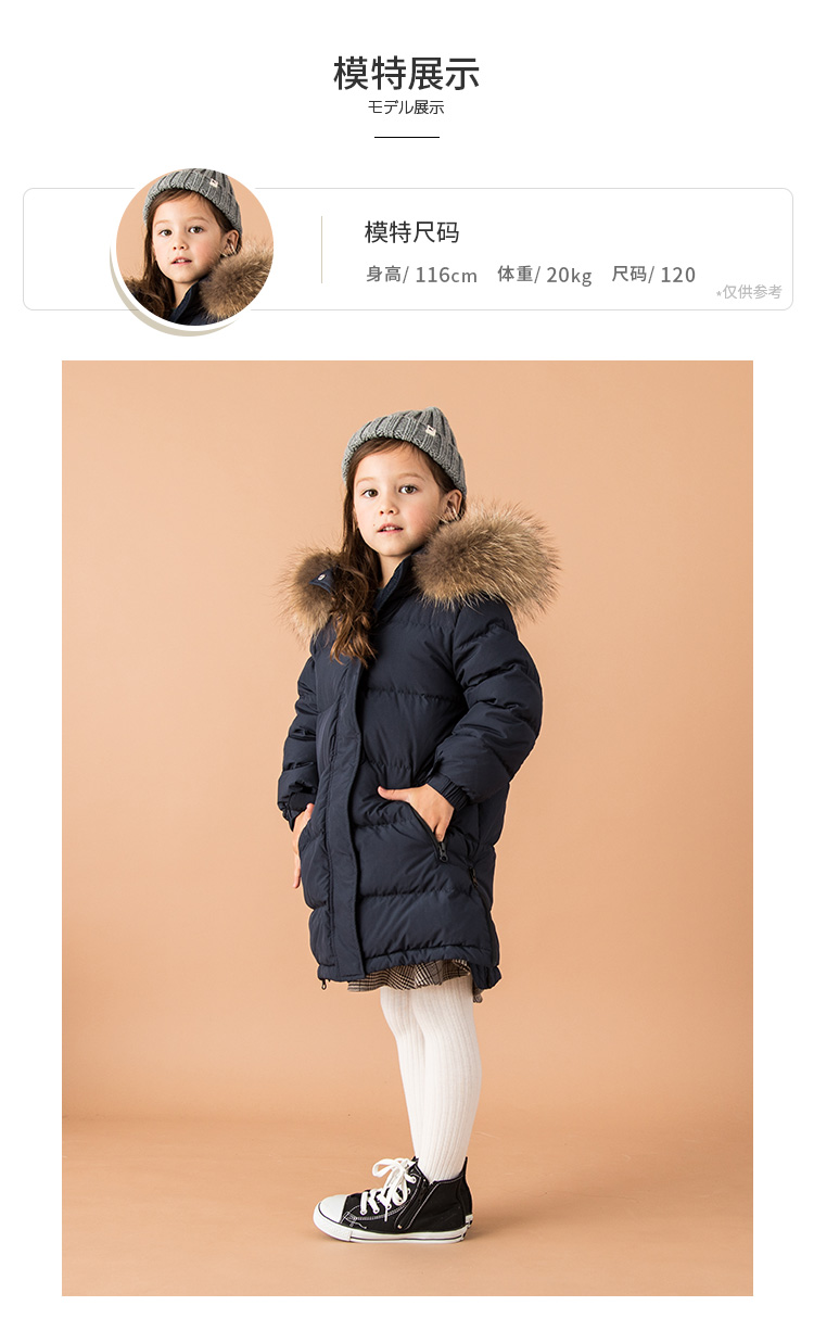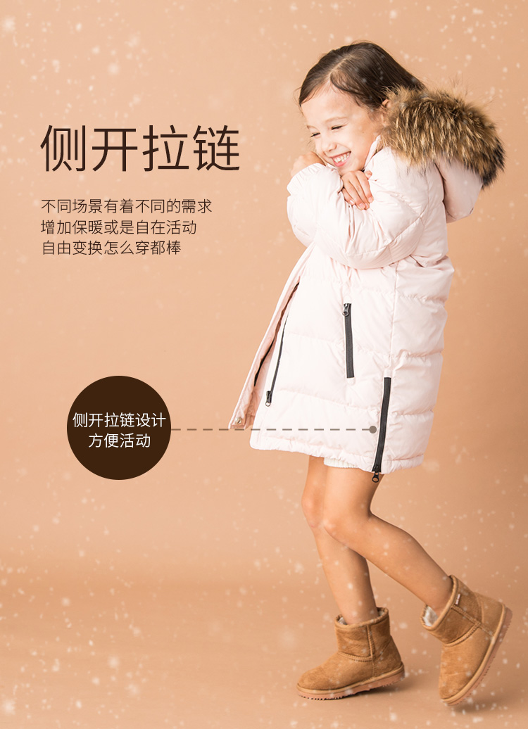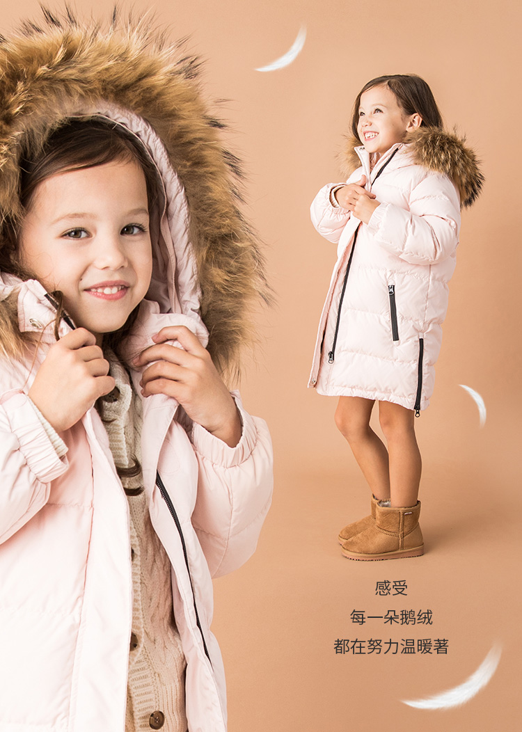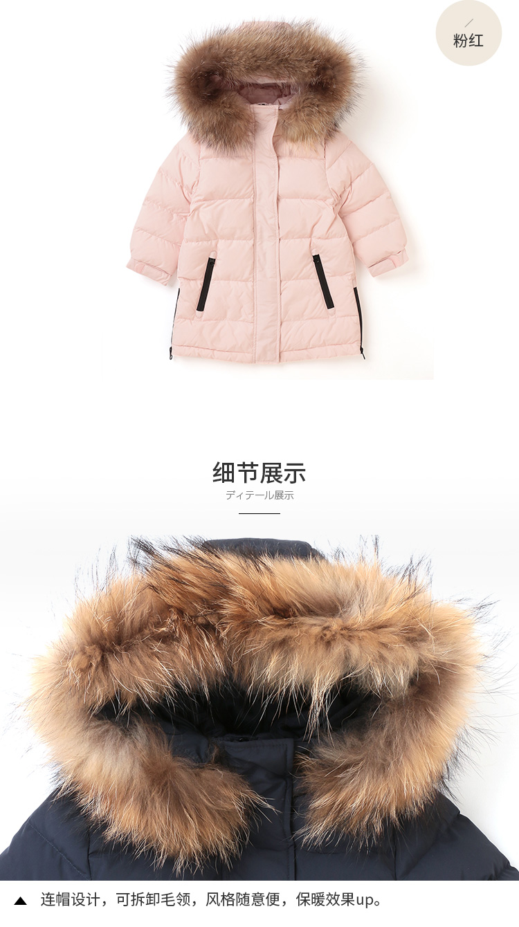 petitmain童装女童儿童保暖外套中长款鹅绒极寒羽绒服2019冬新款