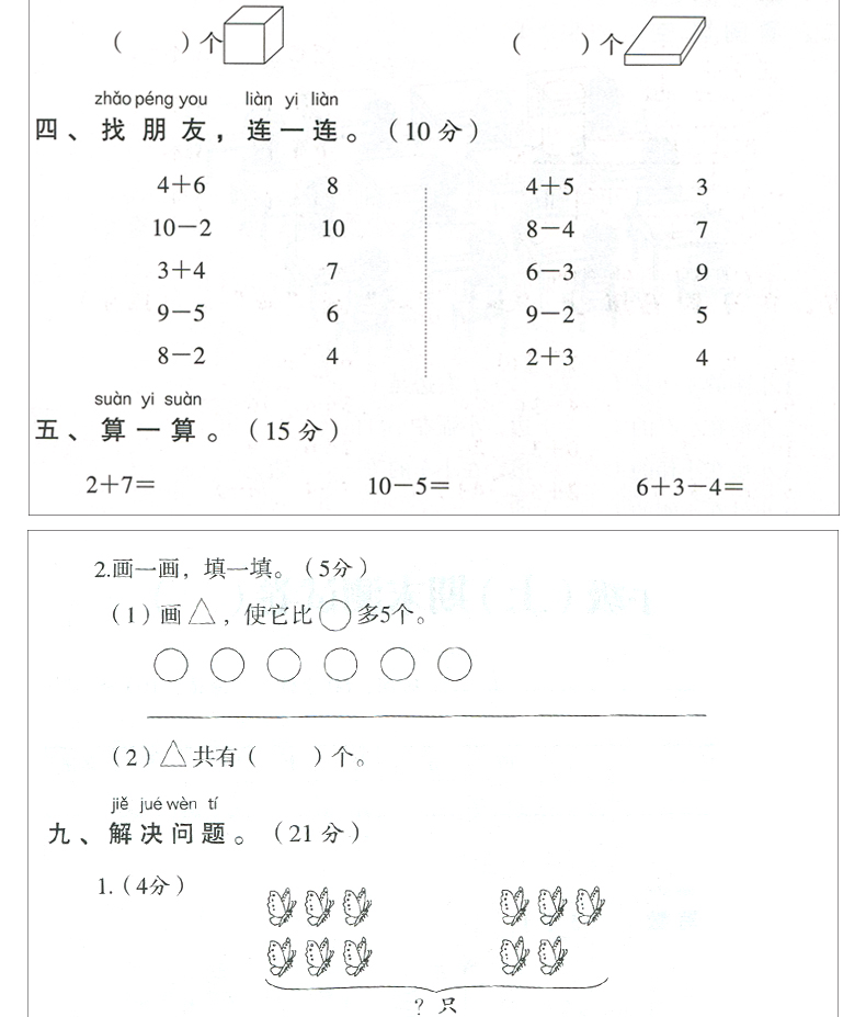 2019秋全套人教版一年级上册试卷全套语文数学书同步训练2本部编版统编版小学一年级上册试卷测试卷全套单元测试卷册期末冲刺100分