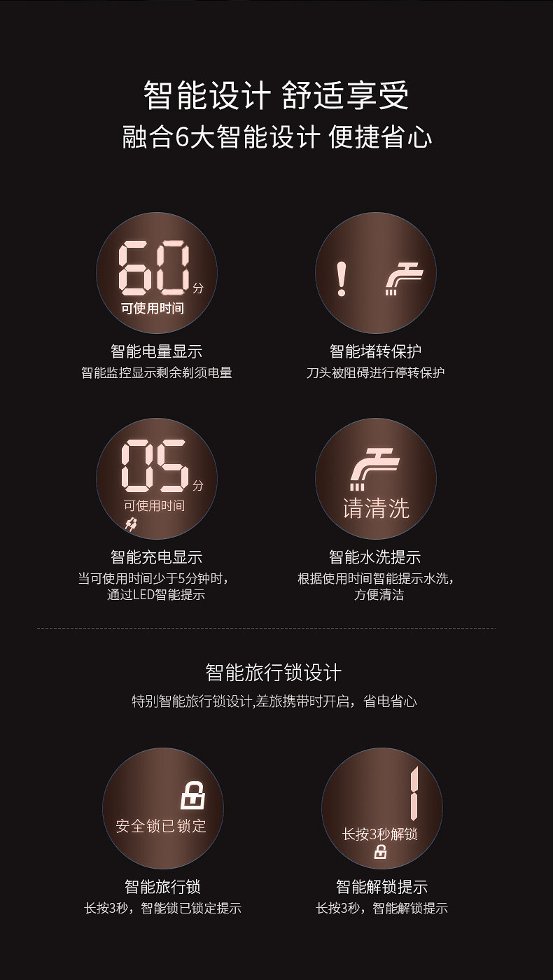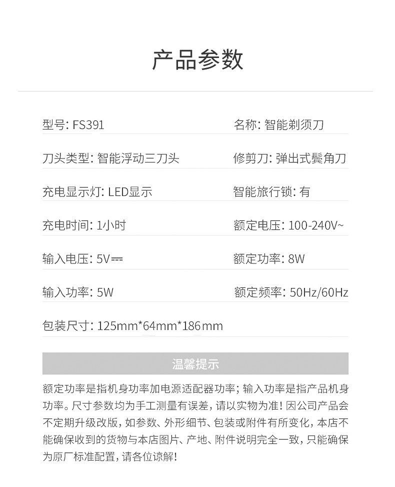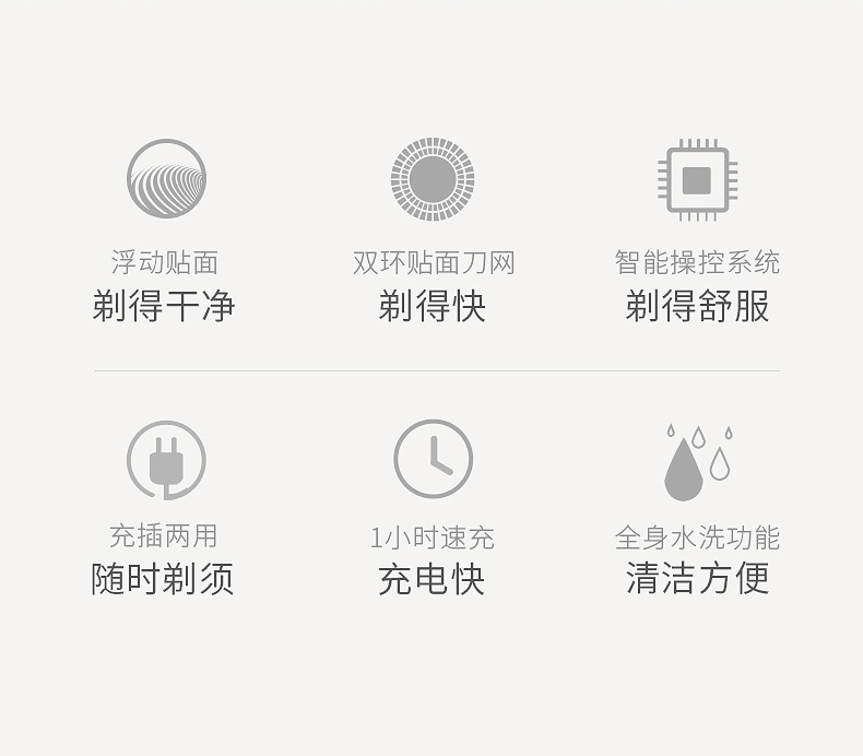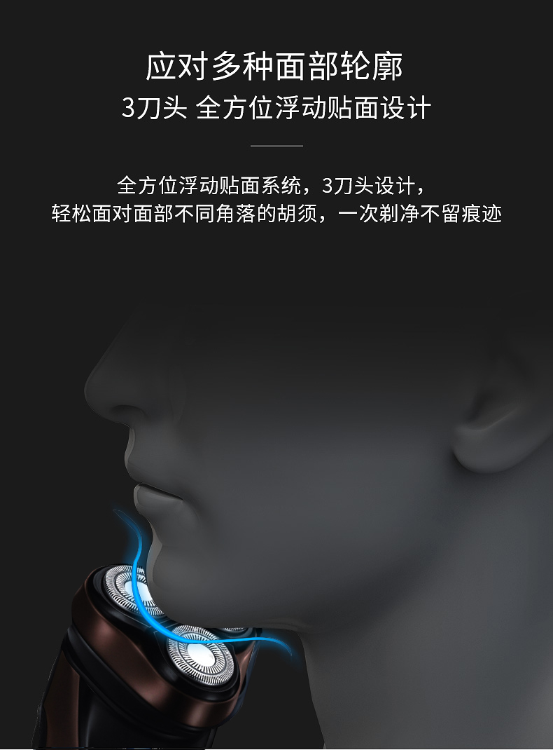 新品上市,1小时快充,IPX7防水,智能电量显示,全身水洗,三头浮动贴面剃须,智能防夹须,自动研磨刀头,弹出式修剪鬓刀,超长待机,两年保修,飞科品牌值得信赖。