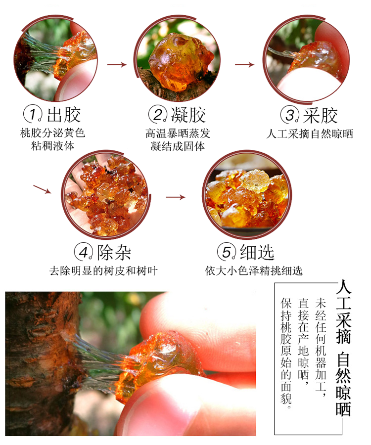 金唐桃胶200g 桃树 胶桃花 泪非特级野生无硫 搭配桃胶雪燕皂角米