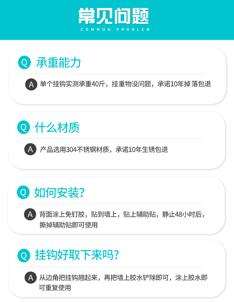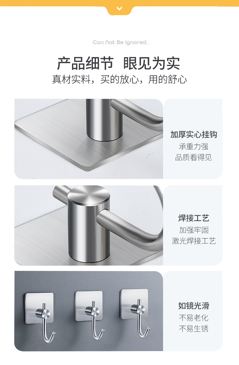 【十一促销】304不锈钢材质,持久耐用,不生锈,无需打孔,不伤墙体,轻松稳固贴墙,加厚实心设计,几乎适用于所有硬质墙面,安装简单,拆卸方便!【可重复使用!】